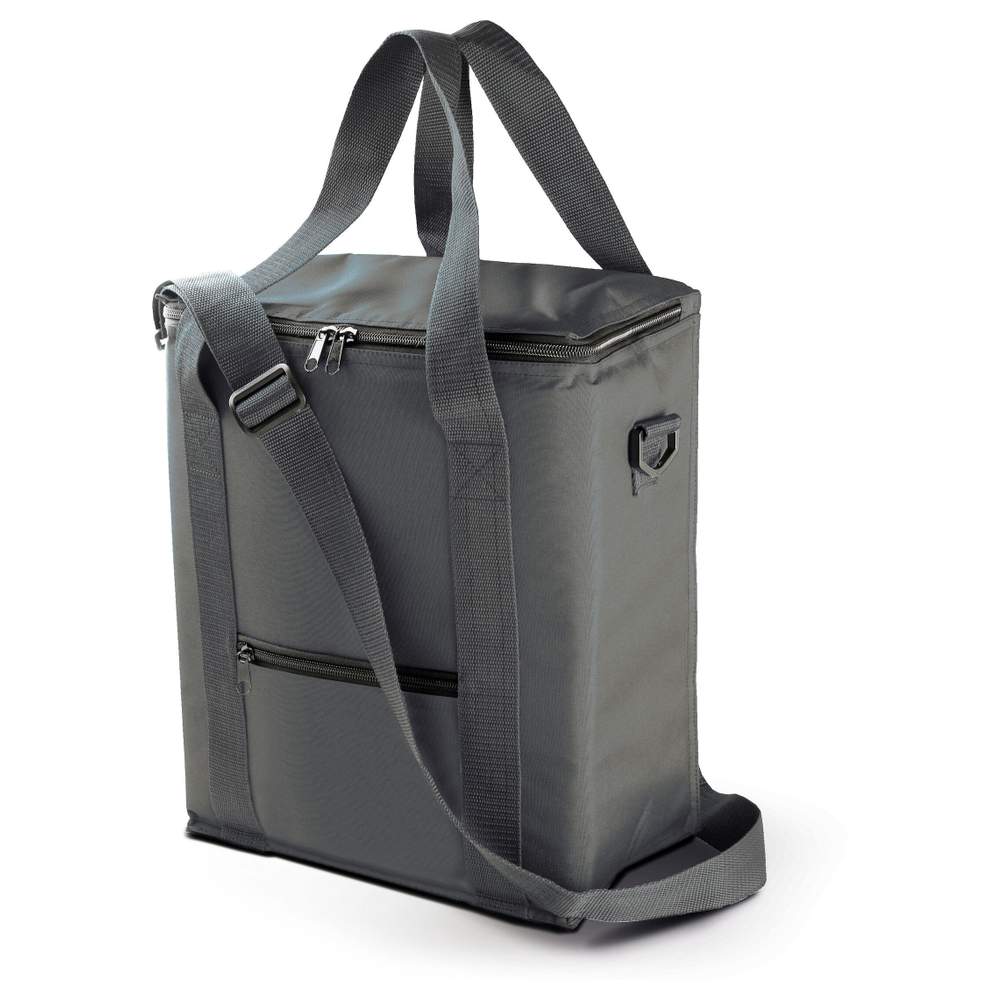Isolierbeutel aus Polyester + EPA + PEVA. Er ist mit einem verstellbaren und abnehmbaren Tragegurt für einen einfachen Transport ausgestattet. Eine vordere Reißverschluss-Tasche bietet zusätzlichen Stauraum. Dieses Zubehörteil ist so konzipiert, dass es die Temperatur von Lebensmitteln und Getränken für eine bestimmte Zeit aufrechterhält.