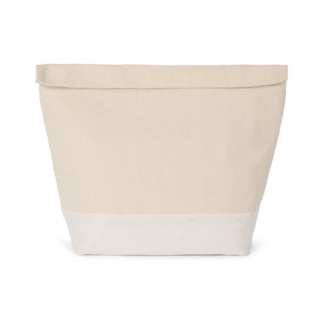 Isothermer Sack, der zur Aufrechterhaltung der Temperatur von Lebensmitteln und Getränken entworfen wurde. Der Rollverschluss sorgt für eine gute thermische Isolation und einen sicheren Verschluss. Die gerade Form erleichtert die Lagerung und den Transport. Dieser Sack ist in verschiedenen Abmessungen erhältlich, um sich an unterschiedliche Verwendungen anzupassen. Er ist aus Baumwolle, einem nachhaltigen und umweltfreundlichen Material, hergestellt.