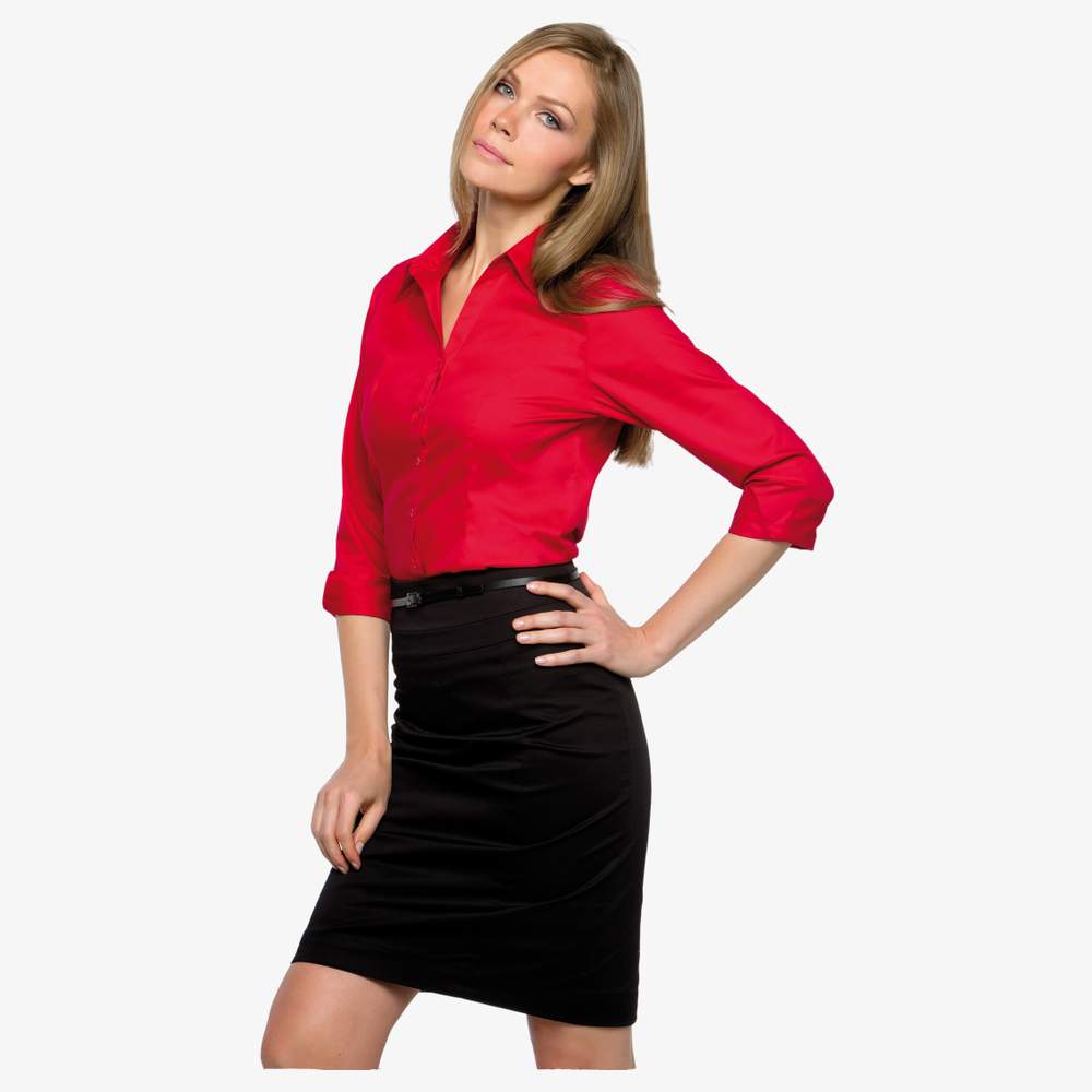 Diese Oxford-Bluse bietet eine figurbetonte Passform für eine schlanke Silhouette. Sie ist aus Baumwolle-Polyester gefertigt und bietet Komfort und einfache Pflege. Sie verfügt über 3/4-Ärmel mit Einschnitten an den Handgelenken, zwei Abnäher an Vorder- und Rückseite sowie einen leicht abgerundeten Saum. Die farblich abgestimmten Knöpfe verleihen einen dezenten Hauch von Eleganz. Der Kragen ohne Knopf trägt zu einem schlichten Stil bei. Diese Bluse ist so konzipiert, dass sie leicht zu bügeln ist, was sie zu einer praktischen Wahl für den täglichen Gebrauch macht.