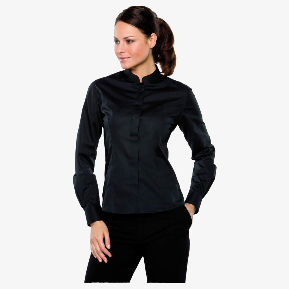 Diese langärmelige Bluse hat einen im asiatischen Stil inspirierten Look. Ihre Konstruktion aus Baumwolle, Polyester und Lycra bietet optimalen Komfort und erleichtert die Pflege. Der Kragen und die Knöpfe in einer Farbe unter einem Knopfband, mit einem sichtbaren Knopf, verleihen ihr ein gepflegtes Aussehen. Die Abnäher vorne ermöglichen eine Anpassung der Silhouette, während die verstellbaren Ärmel und seitlichen Schlitze eine größere Bewegungsfreiheit bieten. Die leicht abgerundete Basis vervollständigt das Design.
