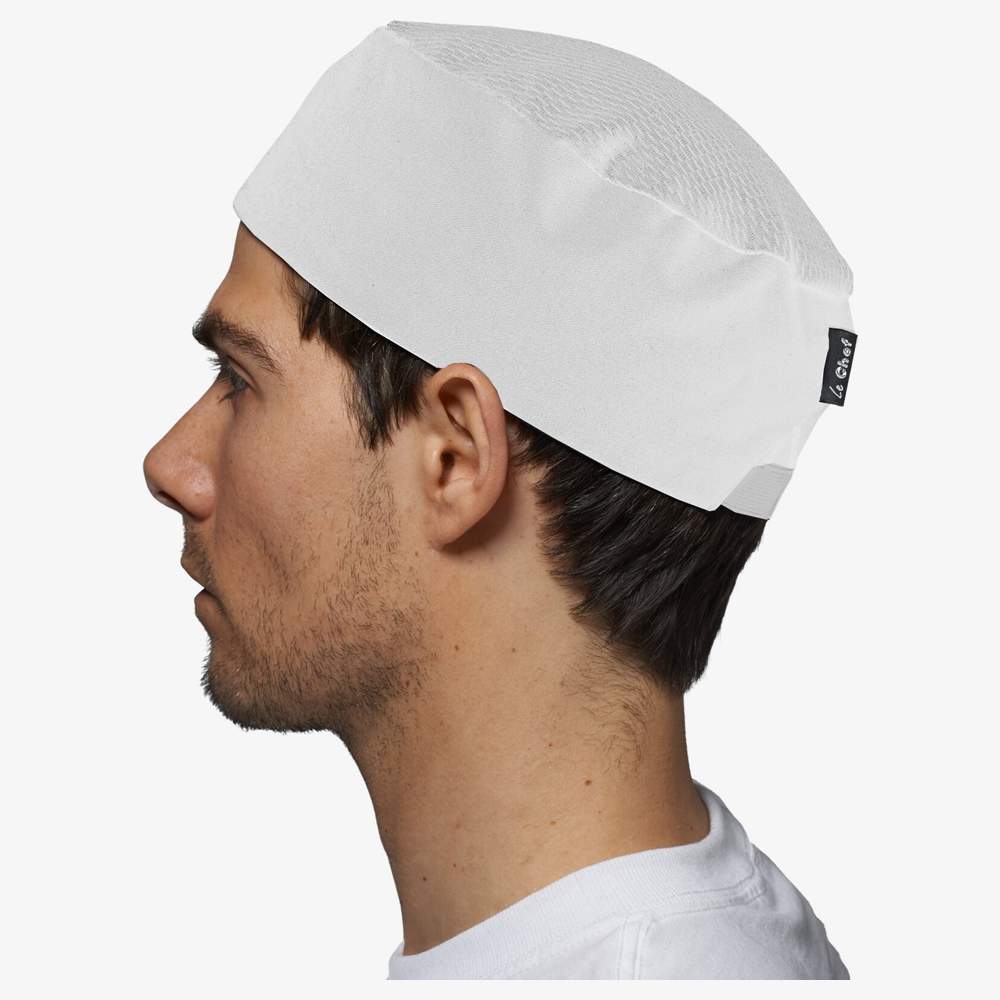 Die Kochmütze Le Chef Skull Cap Staycool ist für Komfort und Funktionalität bei Profis konzipiert. Das Staycool-System sorgt für eine gute Belüftung. Ihre ovale Form ermöglicht eine optimale Anpassung. Das Gummiband hinten erleichtert das Anlegen und hält die Mütze während der Verwendung an Ort und Stelle. Geeignet für intensiven Gebrauch in der Küche, bietet diese Mütze einen guten Halt und eine ausgezeichnete Haltbarkeit.