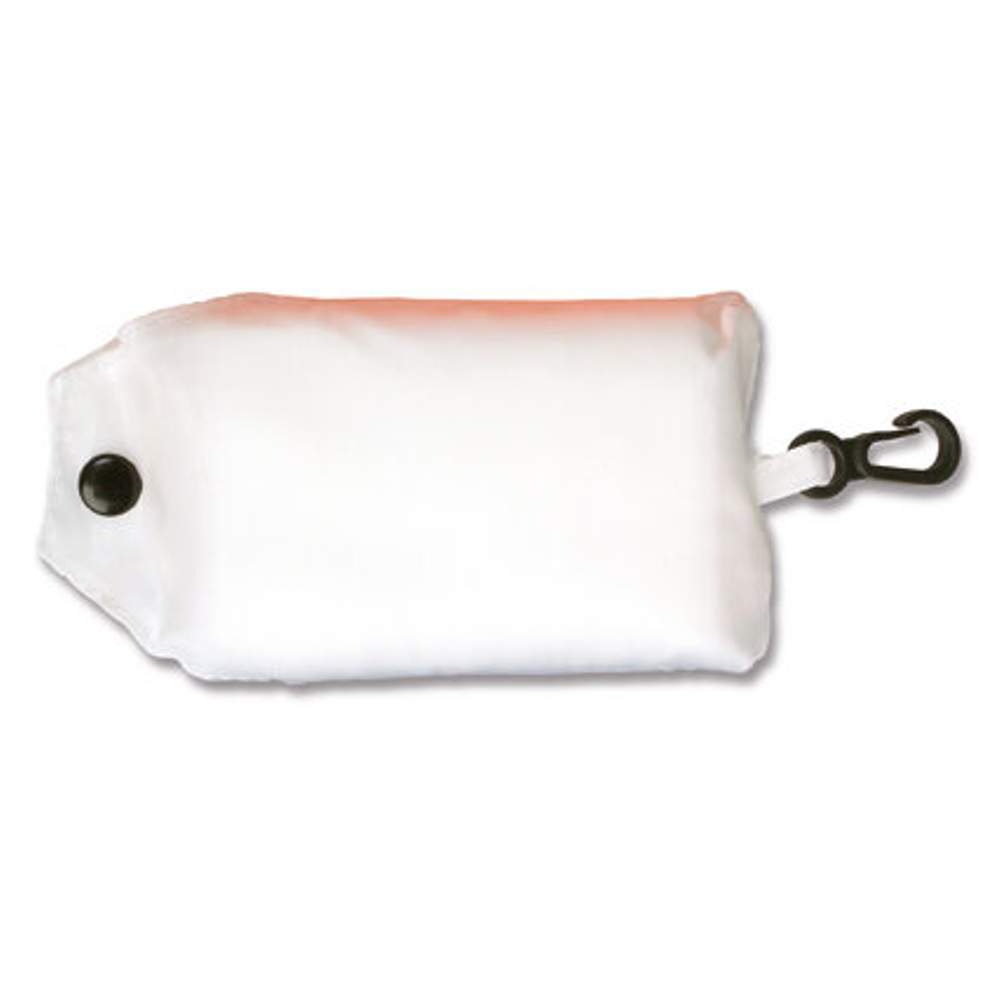 Einkaufstasche, die für den einfachen Transport von Artikeln konzipiert ist. Ihre Konstruktion ermöglicht eine kompakte Aufbewahrung, was sie für den täglichen Gebrauch praktisch macht. Sie verfügt über kurze Griffe für einen einfachen Griff und umfasst einen Kunststoffkarabiner für eine einfache Befestigung. Ihre umwandelbare Struktur ermöglicht die Verwendung als kleiner kompakter Beutel. Diese Tasche ist aus Polyester gefertigt, was eine gewisse Haltbarkeit für den regelmäßigen Gebrauch bietet.