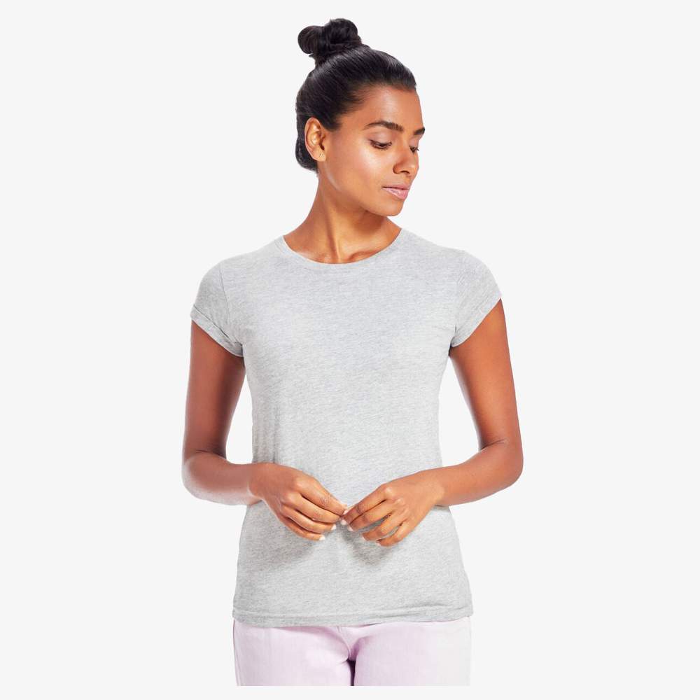 Eintöniges T-Shirt für Frauen, hergestellt aus Bio-Baumwolle oder im Umstellungsprozess, ringspun und gekämmt. Es hat eine moderne Passform und einen klassischen runden Halsausschnitt. Die Ärmel sind hochgekrempelt und mit einem Stich festgenäht, was einen lässigen Stilverleihung hinzufügt. Die feinen Rippen am Halsausschnitt sorgen für optimalen Komfort. Dieses T-Shirt ist etwas länger für eine schmeichelhafte Silhouette. Es ist mit einem abnehmbaren Etikett für zusätzlichen Komfort ausgestattet.