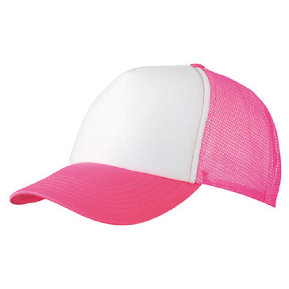 5-Panel Polyester Mesh Cap mb070 - White neon pink
