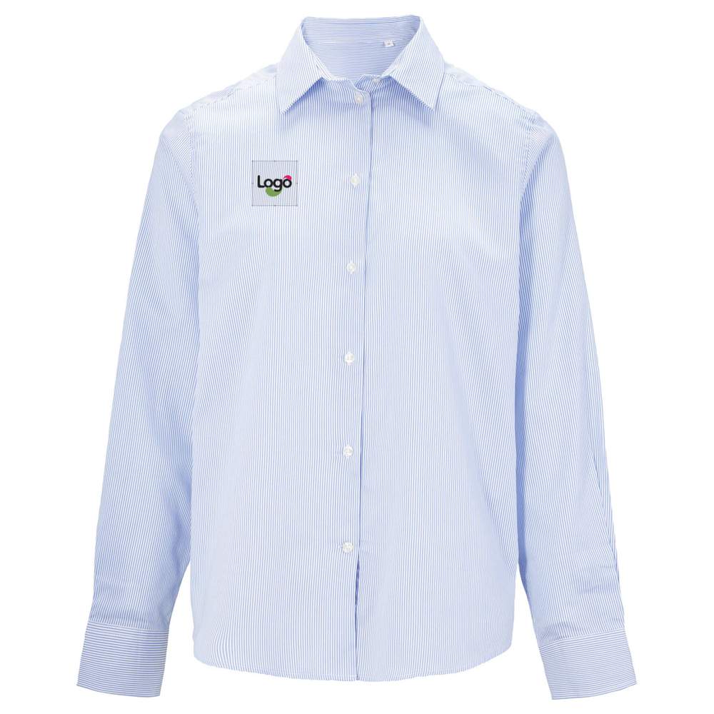 Baumwollstreifenhemd easy care für Damen. Lange Ärmel. Verstärktes italienisches Revers. Verstärktes und mit Kapuzenschnalle versehenes Armband. Einfache Knopfleiste. Rückenteil mit Passepoil und Komfortfalte. Filgefärbt. Antifaltbehandlung. Zusammensetzung: 100% Baumwolle. Möglichkeit zur Personalisierung durch Stickerei für ein einzigartiges Aussehen.