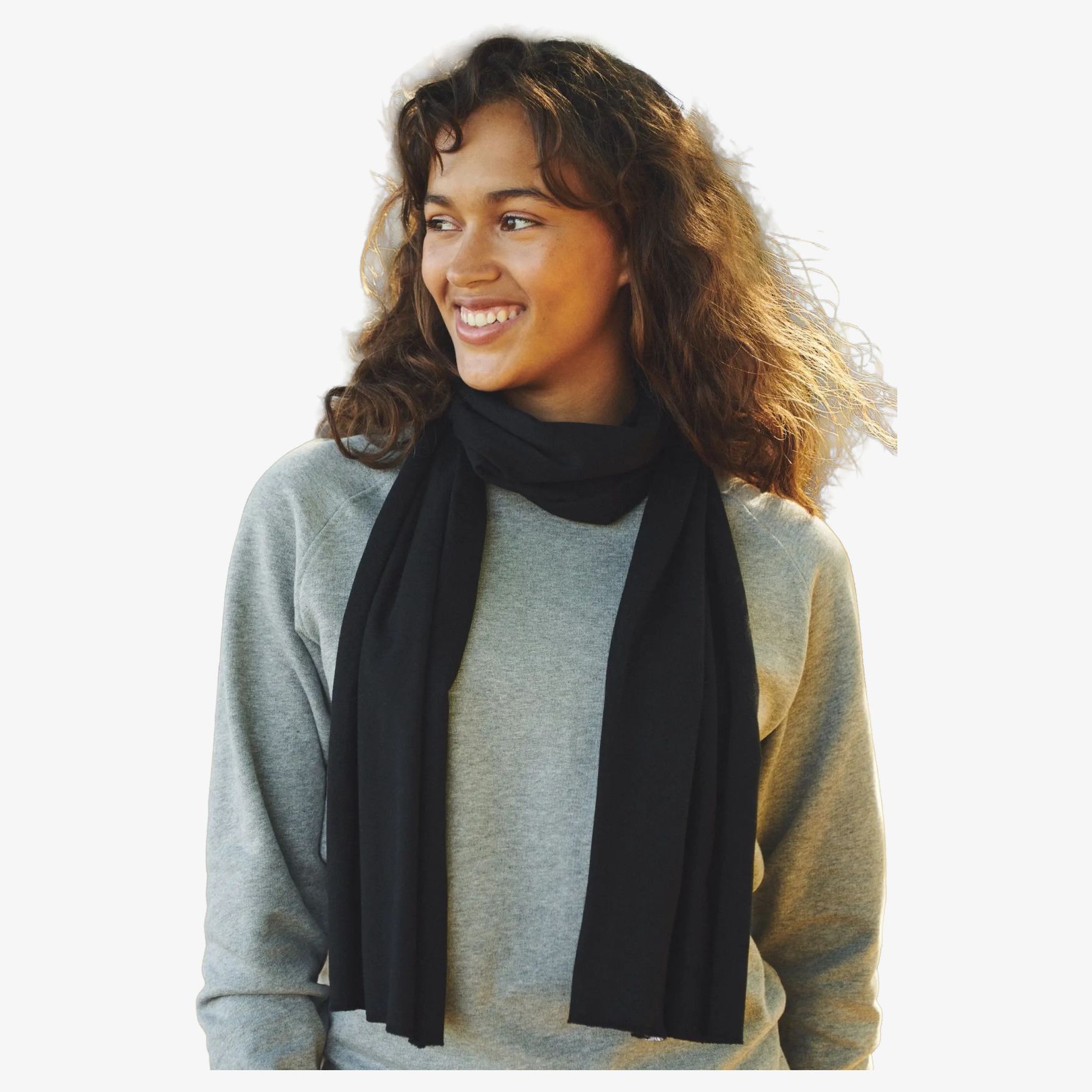 Der Scarf ist ein Schal aus gekämmter Baumwolle mit Jerseystrick. Sein Format eignet sich für den täglichen Gebrauch und fügt eine zusätzliche Textilschicht um den Hals hinzu. Die Verarbeitung umfasst ein seitlich eingenähtes Etikett.