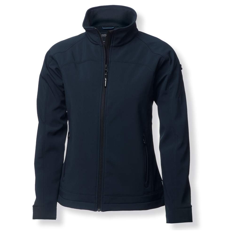 Damen Softshelljacke aus einem weichen und glatten Stoff, die eine figurbetonte Passform bietet. Sie verfügt über eine wasserabweisende Behandlung und einen Silikon-Windstopper hinter dem Hauptreißverschluss. Dieses Kleidungsstück ist für Komfort und Schutz bei verschiedenen Aktivitäten konzipiert.