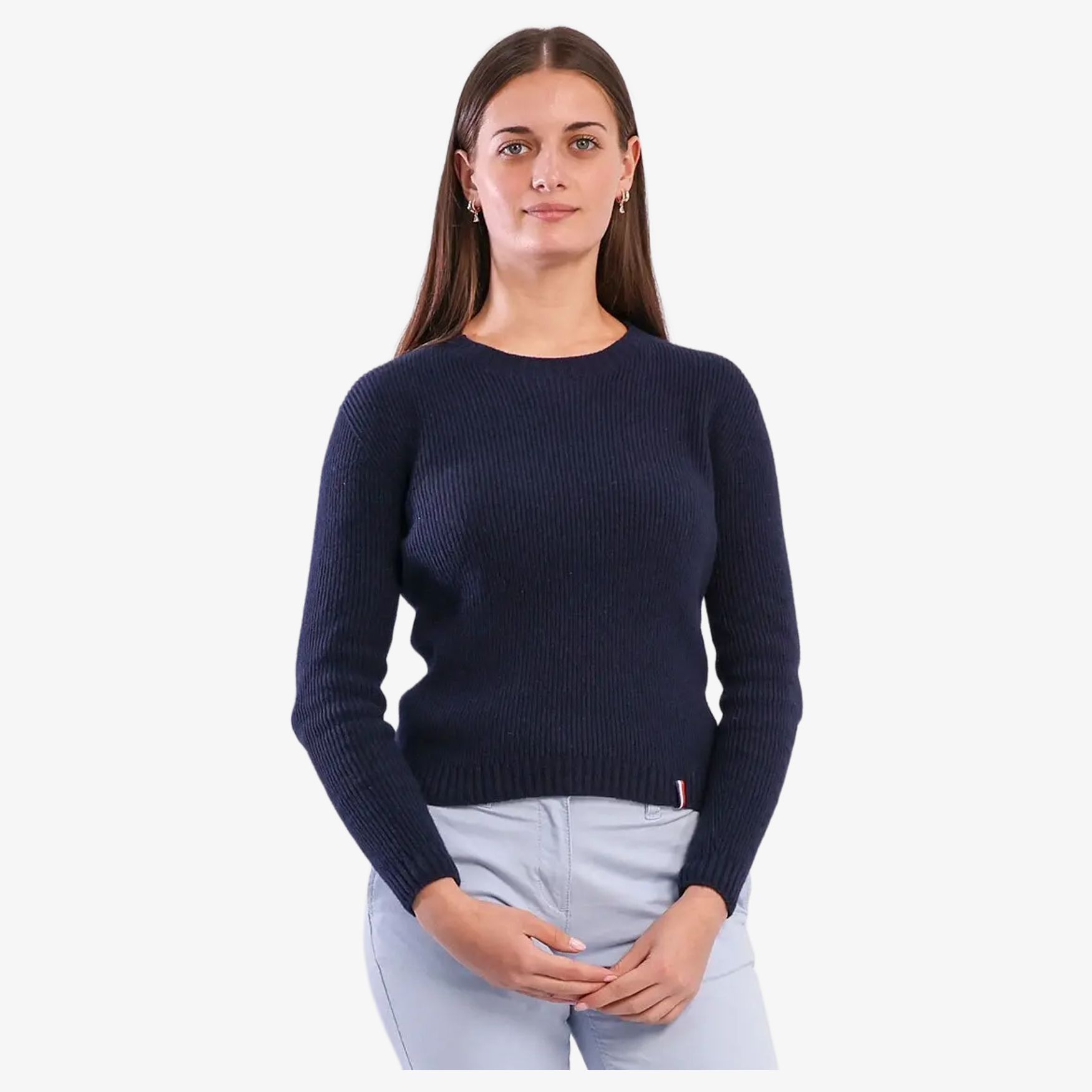 Dieser Pullover wird in Frankreich nach einem vollständigen Verfahren hergestellt, das den Materialabfall begrenzt.