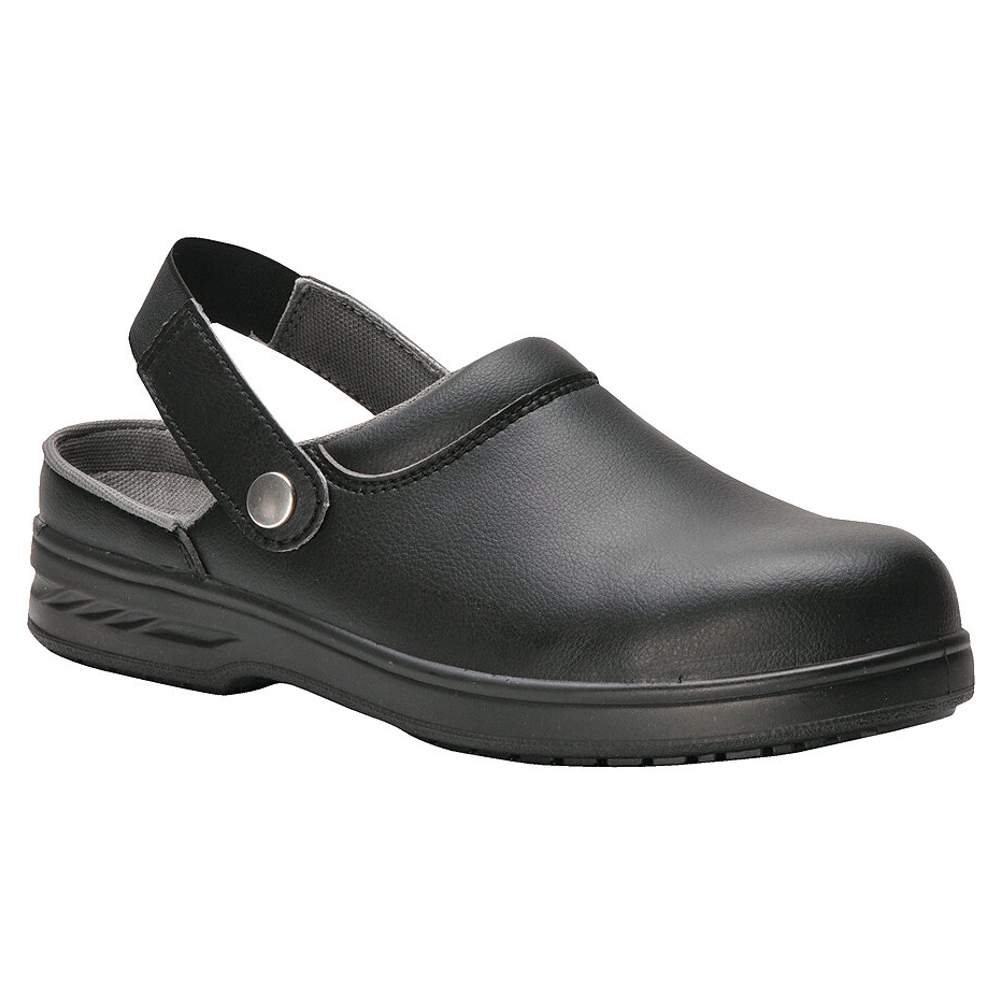 Lebensmittelsicherheitsschuhe, entwickelt für Komfort und Schutz in anspruchsvollen Arbeitsumgebungen. Aus hochwertiger Mikrofaser gefertigt, gewährleistet es die notwendige Wasserfestigkeit und Reinigungsfreundlichkeit, um einen hohen Hygienestandard zu halten. Die rutschfeste Polyurethan-Sohle ist speziell entworfen, um das Risiko von Ausrutschen auf nassen oder mit Lebensmitteln kontaminierten Oberflächen zu minimieren und somit die Sicherheit der Bedienpersonen zu erhöhen. Der abnehmbare Schuhbügel ermöglicht eine individuelle Anpassung und erleichtert das An- und Ausziehen der Schuhe. Diese Schuhe sind persönliche Schutzausrüstung für Fachkräfte in der Lebensmittelindustrie, die ein zuverlässiges und leistungsfähiges Produkt suchen.