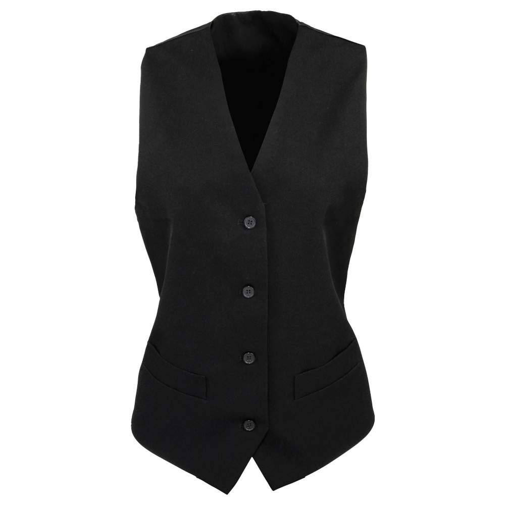 Diese Damenweste ist aus Polyester mit vollständiger Fütterung gefertigt. Sie hat einen zeitgenössischen Schnitt mit einem vierknöpfigen Verschluss und zwei praktischen Taschen. Der Rücken ist glatt für ein gepflegtes Aussehen. Verstellbare Schnallen am Rücken ermöglichen eine individuelle Passform. Dieses Kleidungsstück ist eine vielseitige Option für verschiedene Anlässe.