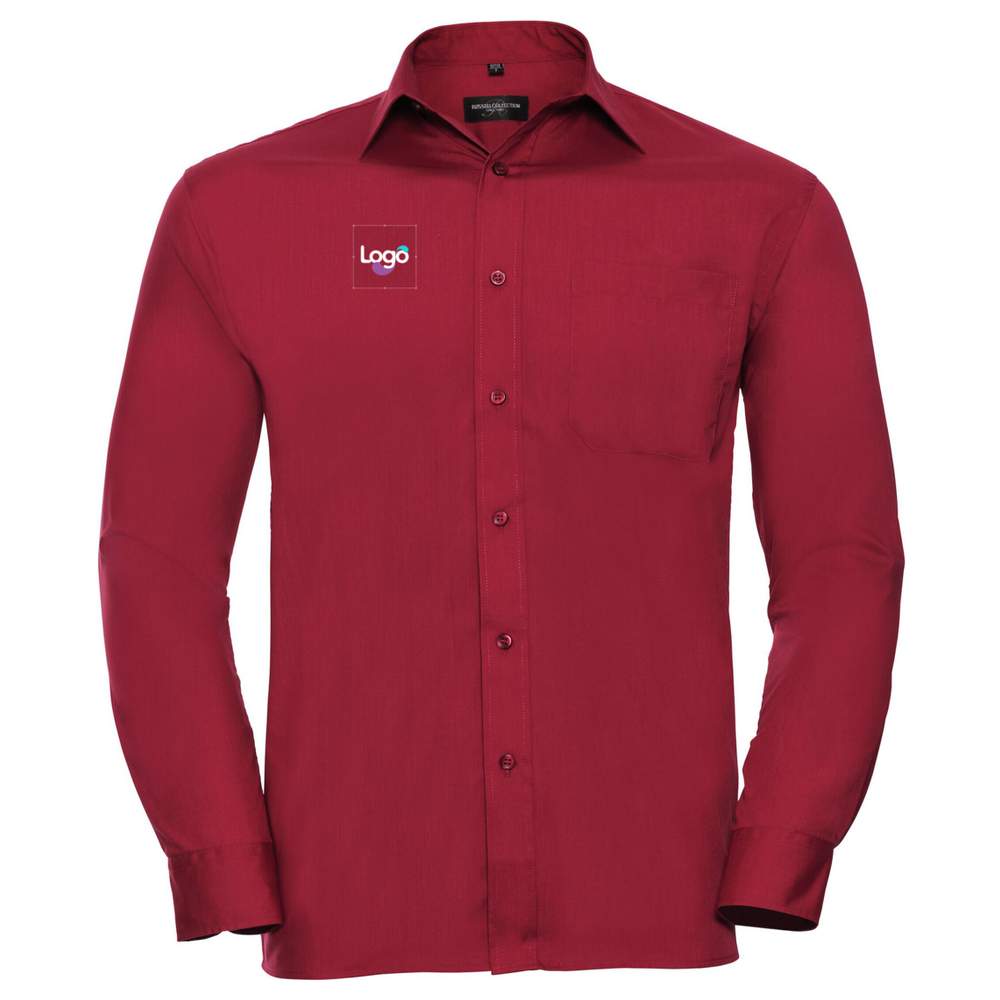 R-934M-0 - Männer Langarm klassisches Polycotton-Poplin-Hemd r-934m-0 personalisierung - classic_red
