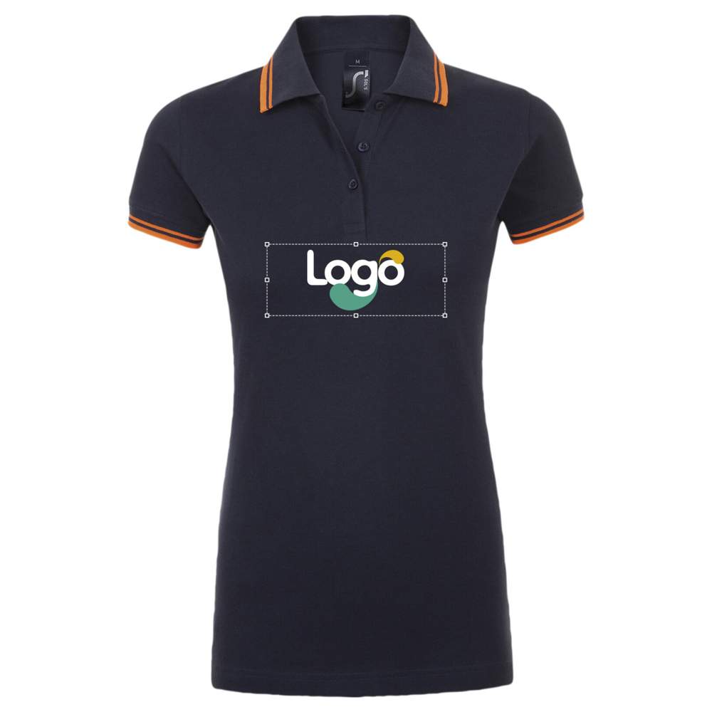 Kurzärmeliges Baumwoll-Polo Pasadena Frauen 00578 Personalisierung - French marine orange fluo