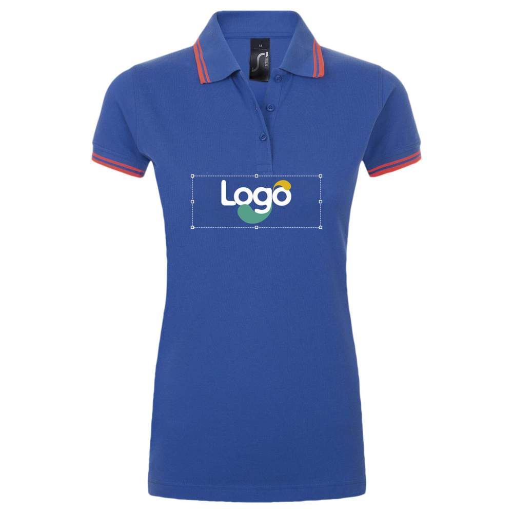 00578 - Kurzärmeliges Baumwoll-Polo Pasadena Frauen 00578 Personalisierung - royal/corail_fluo
