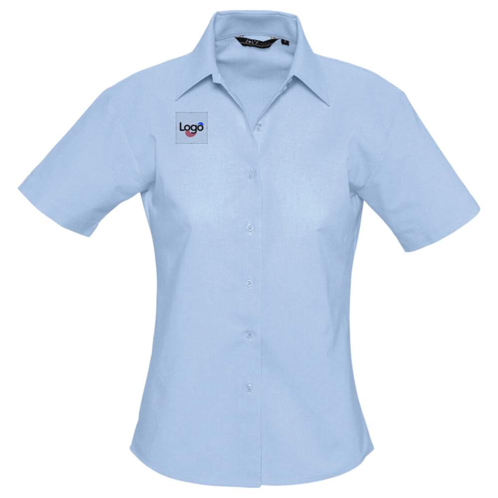 Damenhemd Oxford mit kurzen Ärmeln, hergestellt aus einer Mischung aus Baumwolle und Polyester. Es bietet optimalen Tragekomfort und eine gute Passform. Der klassische Schnitt und die Brustfalten verleihen ihm ein weibliches und elegantes Aussehen. Dieses Modell ist ideal für berufliche Kleidung oder lässigere Anlässe. Möglichkeit zur Personalisierung durch Stickerei für einen einzigartigen Look.