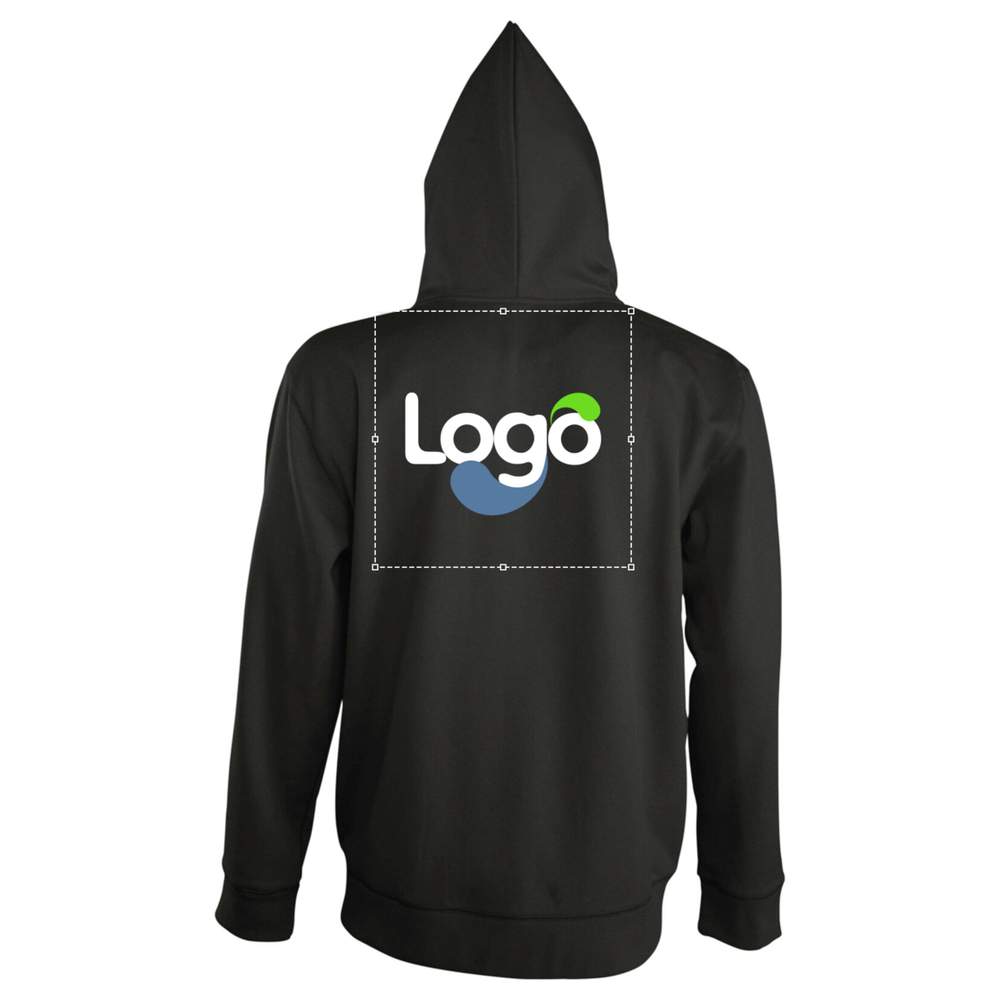 Kapuzenjacke für Herren mit Reißverschluss und Fleecefutter. Sie verfügt über angenähte Ärmel, zwei Känguru-Taschen und Bund und Ärmelbündchen aus elastischem Bund. Gefütterte Kapuze mit passendem Zugband. Dieses Modell ist ideal für die Personalisierung durch Stickerei, um Ihr Logo oder ein Bild Ihrer Wahl hinzuzufügen.