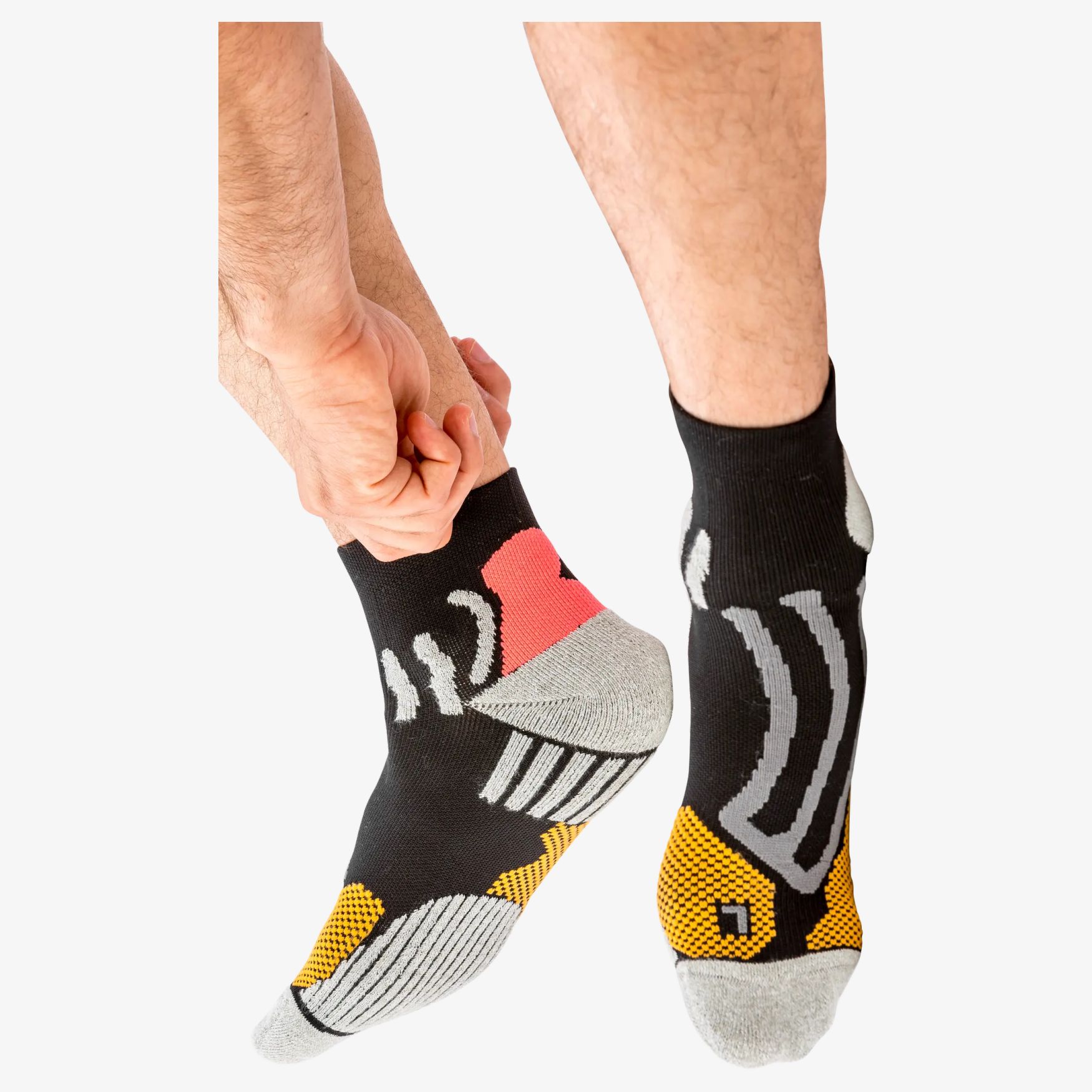 Die technischen Kompressionssocken eignen sich für Sport und Alltag, mit COOLMAX-Gewebe, nahtloser Verarbeitung und verstärkten Zonen. Die Unterstützung des Fußgewölbes und die gezielte doppelte Schicht tragen zu Komfort und Dämpfung bei.