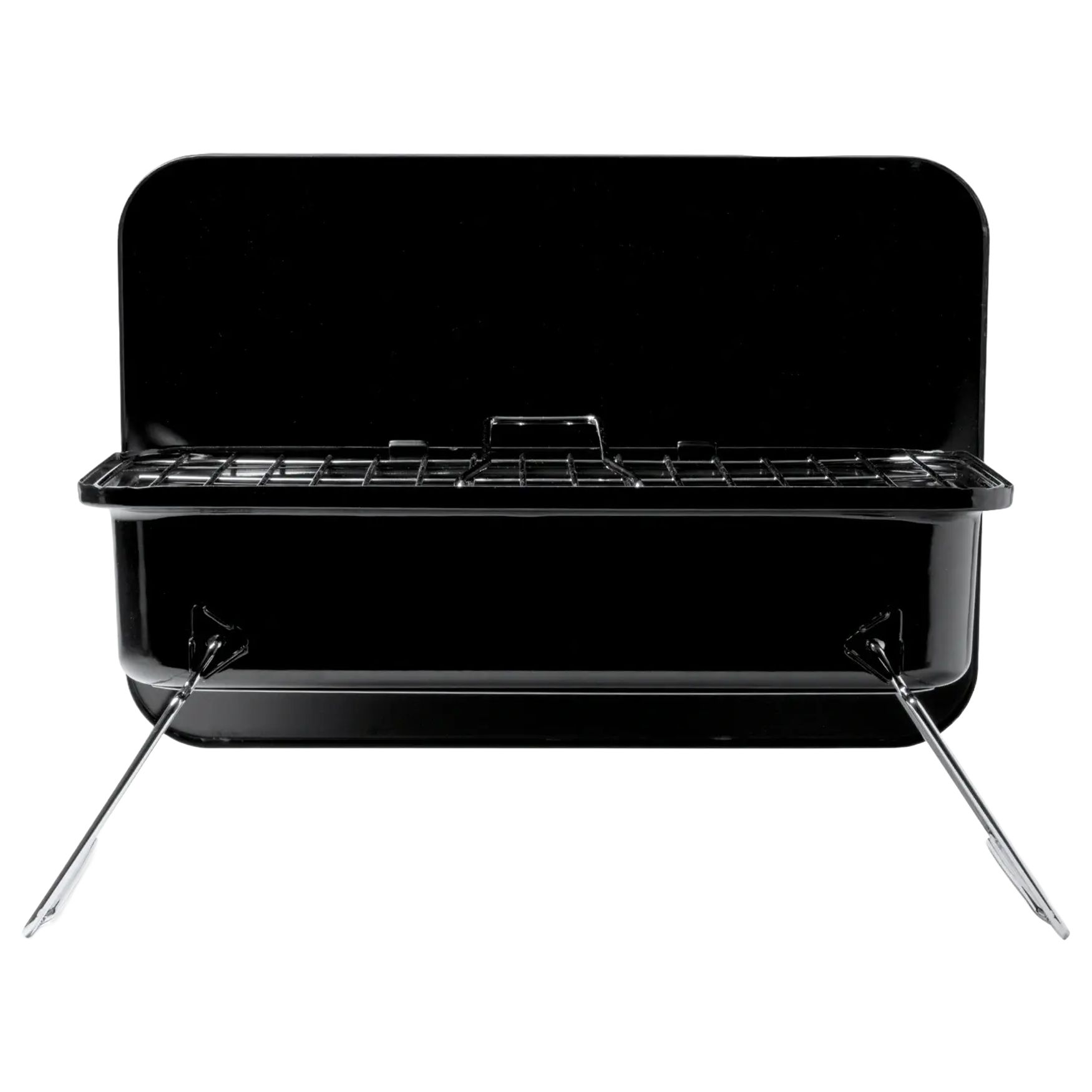 Der tragbare Filet Holzkohlegrill aus Edelstahl, klappbar, mit abnehmbarem Grillrost. Kompaktes Format für den Transport, schnelles Öffnen zum Grillen.