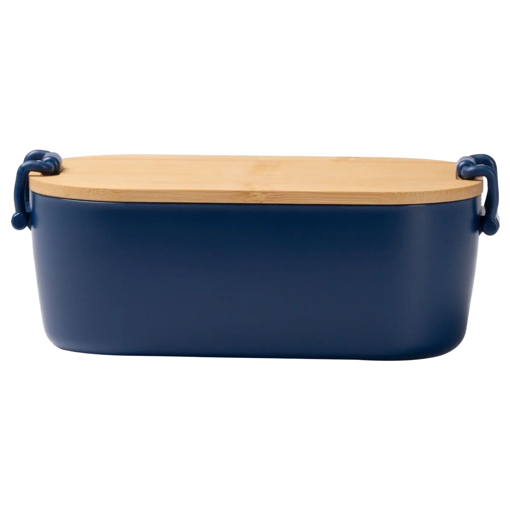 Die Briox Brotdose fi1789 mit Polypropylenkorpus und Bambusdeckel ist mit einem Sicherheitsverschluss ausgestattet. Fassungsvermögen 1 l, Format geeignet für Mahlzeiten zum Mitnehmen.