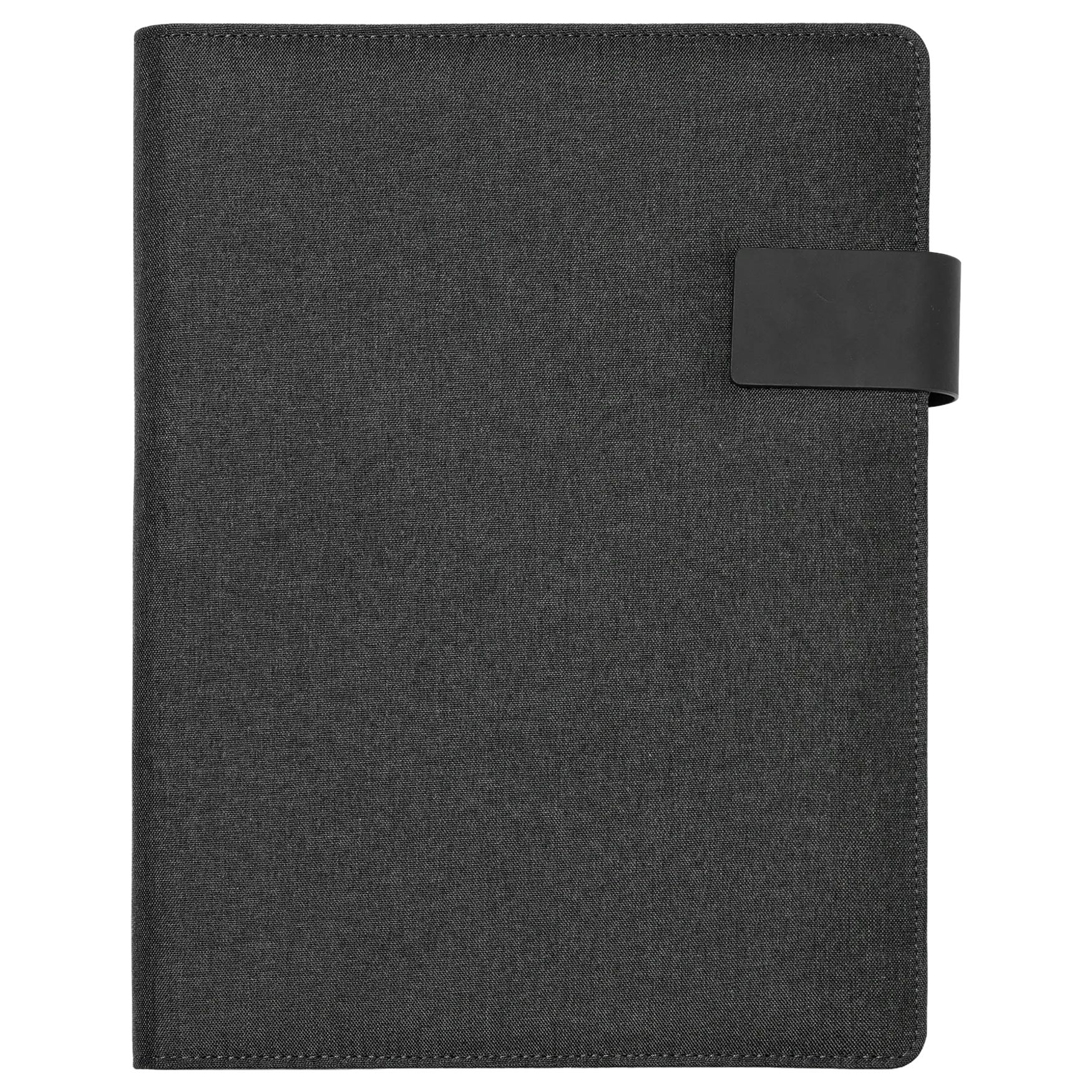Die SAMAR A4-Konferenzmappe aus meliertem RPET-600-D-Gewebe mit Magnetverschluss umfasst einen abnehmbaren Notizblock mit 30 linierten Blättern und 4 Innenfächer mit Stifthalter. Format für die tägliche Organisation von Dokumenten.