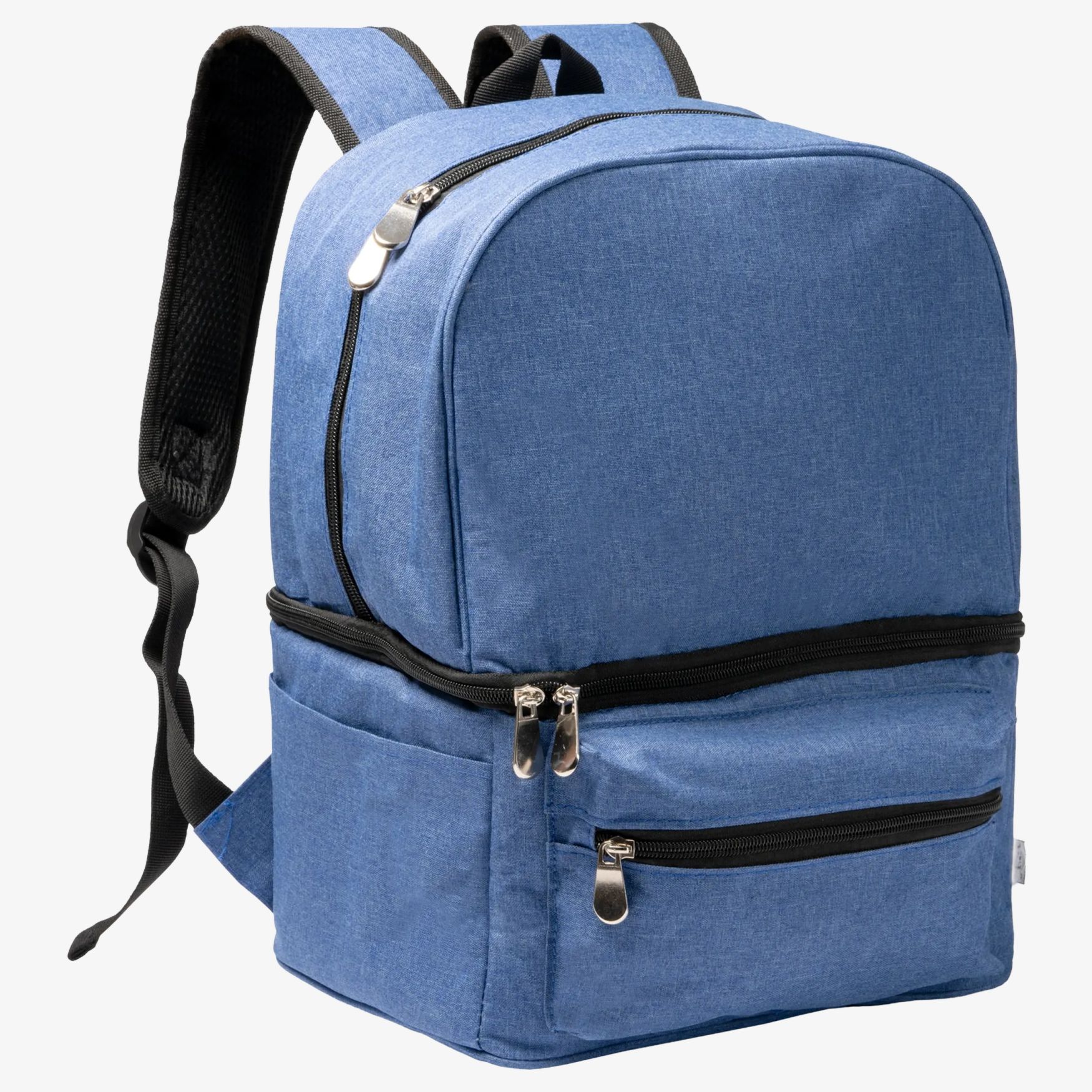 Der isolierte Rucksack SOLOY eignet sich zum Transport von Lebensmitteln und Getränken mit einem unteren Fach mit isoliertem Innenraum und einem oberen Fach mit Stauraum. Vereinfachte Organisation durch eine Fronttasche mit Reißverschluss, zwei Seitentaschen und drei Innentaschen.
