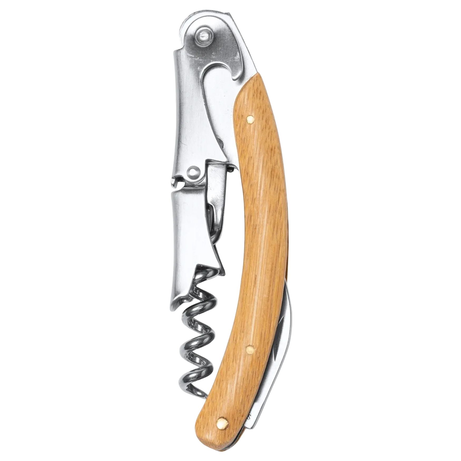 Der Korkenzieher aus Edelstahl mit Bambusgriff besitzt ein klassisches Design, das einen komfortablen und sicheren Griff bietet. Der Doppelhebelmechanismus erleichtert das Öffnen der Flaschen durch Reduzierung der benötigten Kraft.