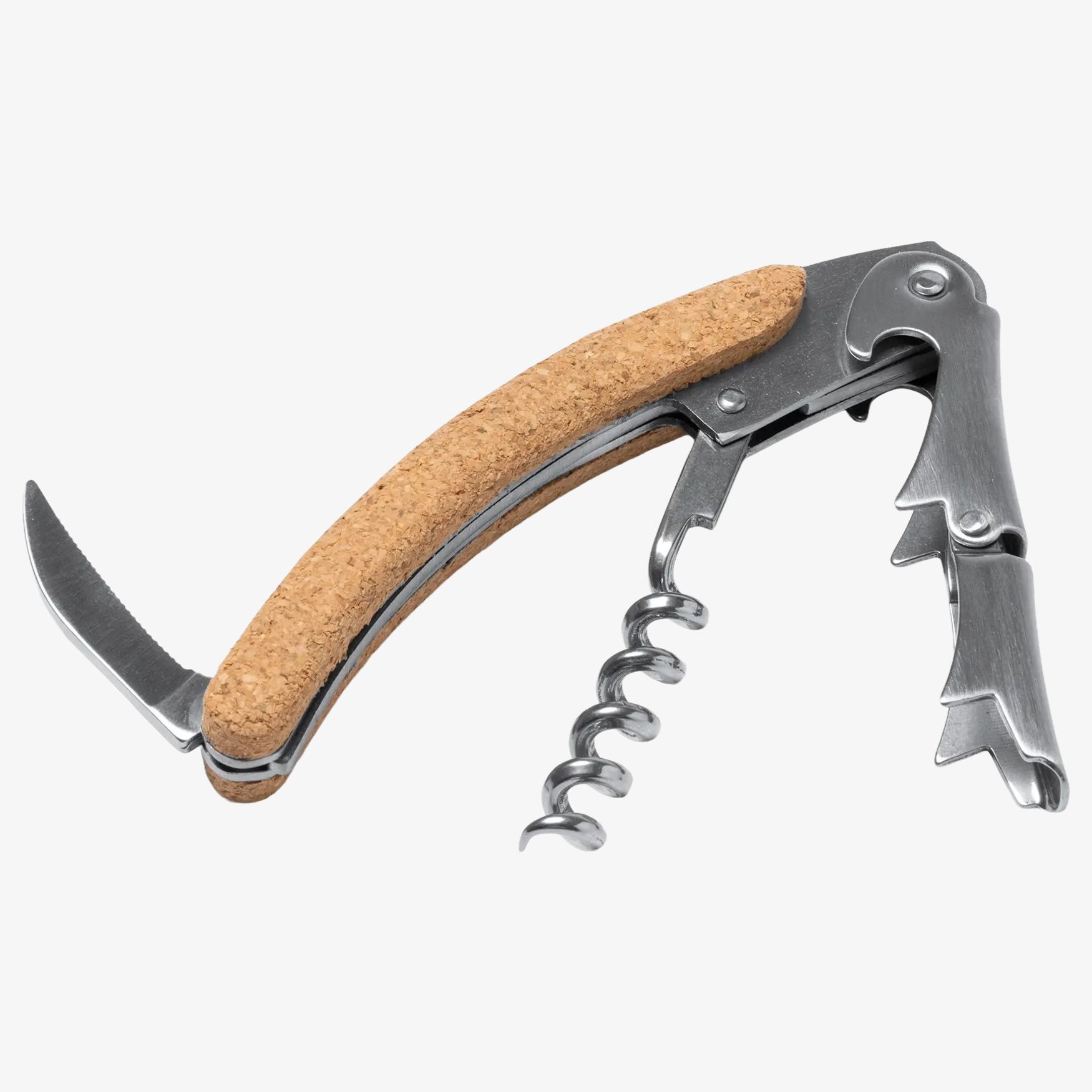 Der Brakel Korkenzieher aus Edelstahl mit Korkgriff und Doppelhebel erleichtert das Öffnen von Flaschen, mit stabilem Halt und geringerem Kraftaufwand. Maße: 11 x 3 x 1,5 cm.