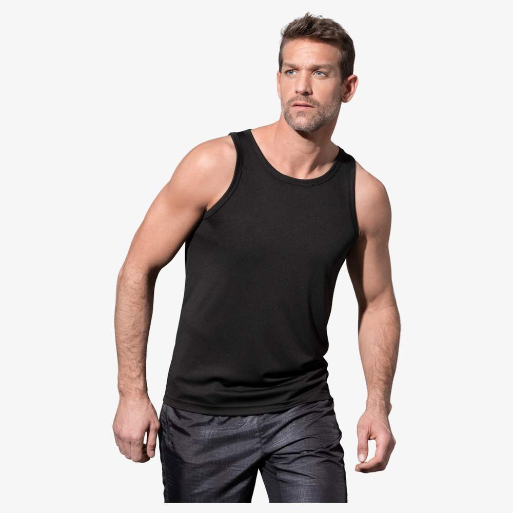 Eng anliegendes Sportbustier für Männer aus funktionalem, atmungsaktivem, schnell trocknendem Interlock. Schnell trocknendes und feuchtigkeitsregulierendes Gewebe, ohne Markenetikett am Hals. ACTIVE-DRY: funktionales, schnell trocknendes Material mit hervorragender Feuchtigkeitsregulierung und Atmungsaktivität, weiches und leicht glänzendes Material, reflektierendes ACTIVE-DRY-Logo auf dem Rücken, Rundhalsausschnitt und Armkanten mit Bindekante, seitliche Nähte, kleine Größenetikette am Hals, Pflegeetikette in der seitlichen Naht.