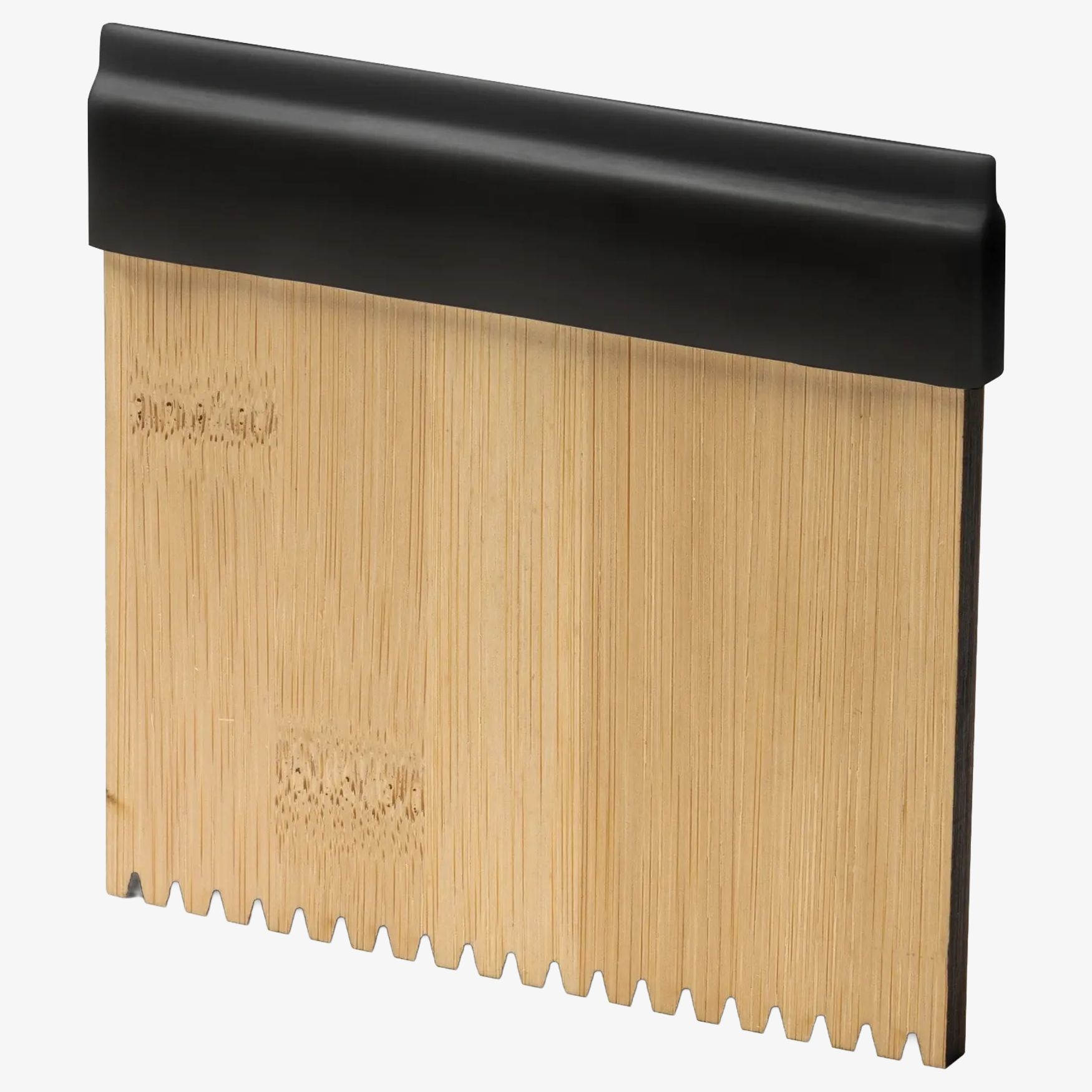 Der Bambus-Eiskratzer verfügt über eine gezackte Kante und eine gerade Kante für verschiedene Anwendungen beim Enteisen.