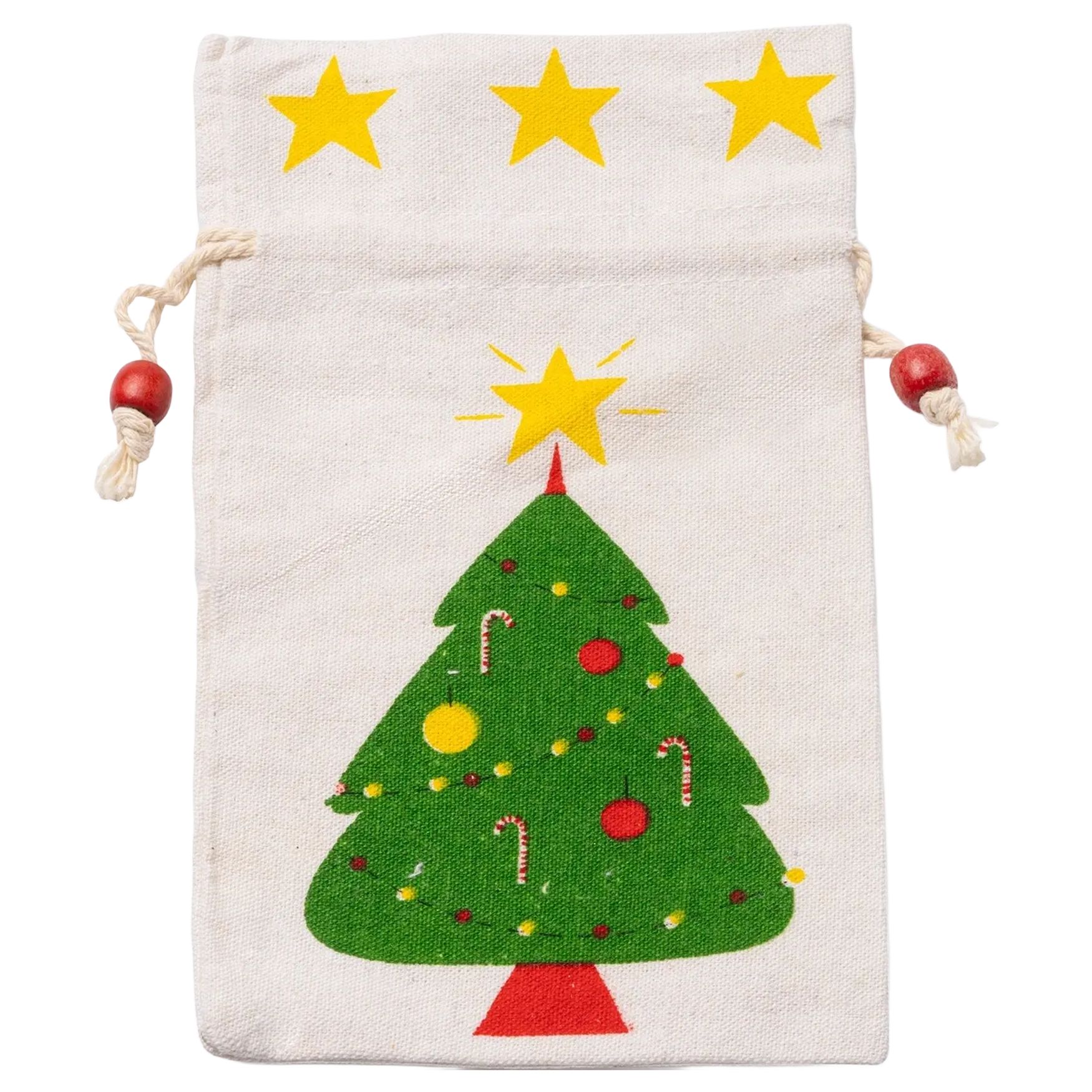 Der kordelbeutel aus Baumwolle zeigt ein Weihnachtsbaum-Motiv. Er misst 13 x 23 cm und dient zum Aufbewahren und Transportieren kleiner Gegenstände. Dieser Beutel zeichnet sich durch seine Baumwollzusammensetzung aus.