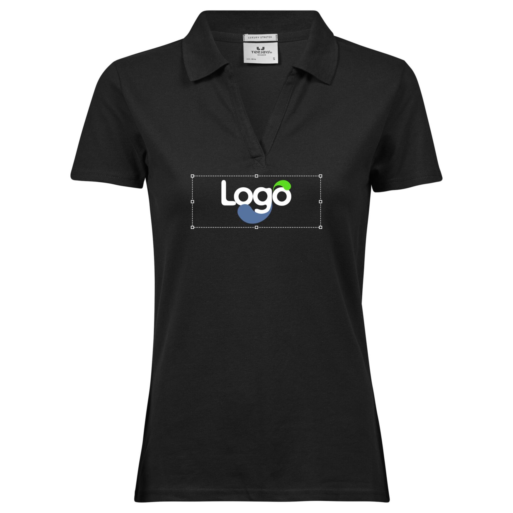 Luxus Damen Stretch V-Ausschnitt Polo 1409 personalisiert - Black