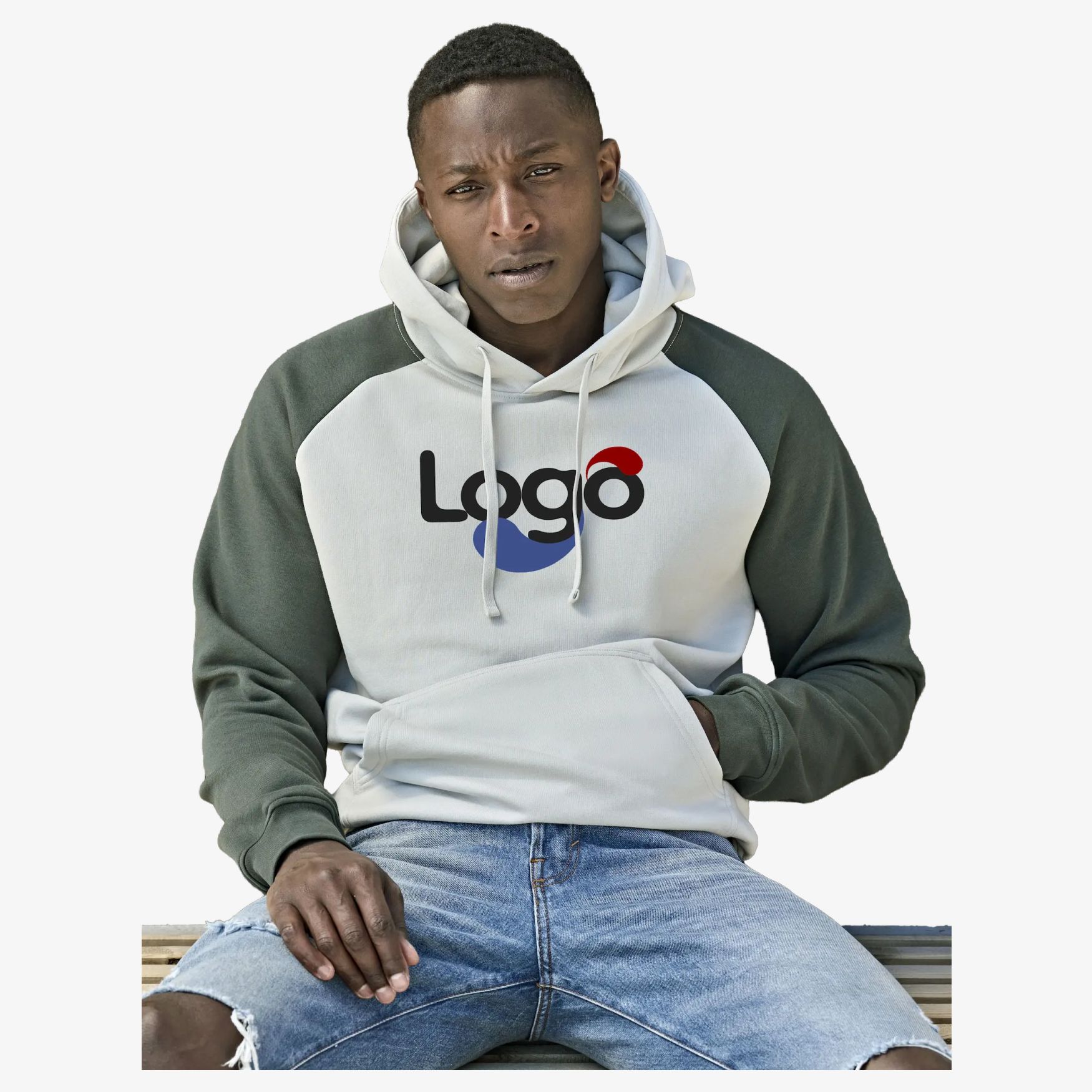 Der zweifarbige Kapuzenpullover 5156 eignet sich mit seiner lockeren Passform, seiner angerauten Innenseite und seinen kontrastierenden Raglanärmeln für den täglichen Gebrauch. Seine vorgeschrumpfte Verarbeitung hilft, die Form zu erhalten. Die Halbmondpasse erleichtert die Personalisierung im vorgesehenen Bereich, während die Rippbündchen mit Elasthan für einen flexiblen Sitz sorgen.
