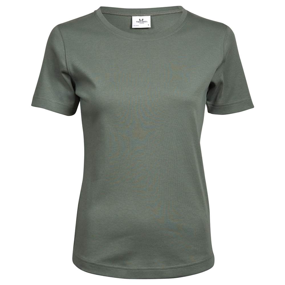 Dieses Damen-Interlock-T-Shirt ist aus hochwertiger gekämmter Ring-Spun-Baumwolle hergestellt. Die lange Faser und die kompakten Fasern sorgen für eine erhöhte Weichheit und Haltbarkeit. Der enzymatische Prozess und der Zusatz von Silikon verleihen der Oberfläche ein besonders glattes und seidiges Gefühl. Der Lycra-Kragenrand behält nach mehreren Waschgängen seine Form. Die verstärkten Nähte bieten eine größere Widerstandsfähigkeit.