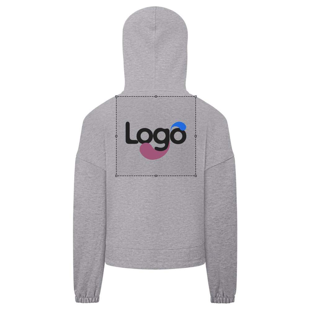 Kindercap-Sweatshirt mit Kapuze crop-top oversize aus recyceltem ® Stoff personalisierung mit Ihrem Design tr85b - Heather grey