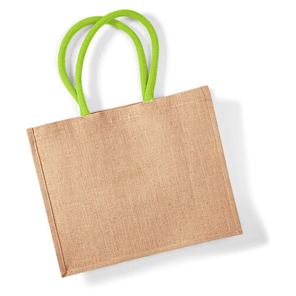 Klassischer Einkaufsbeutel aus Jute w407 - Natural lime green