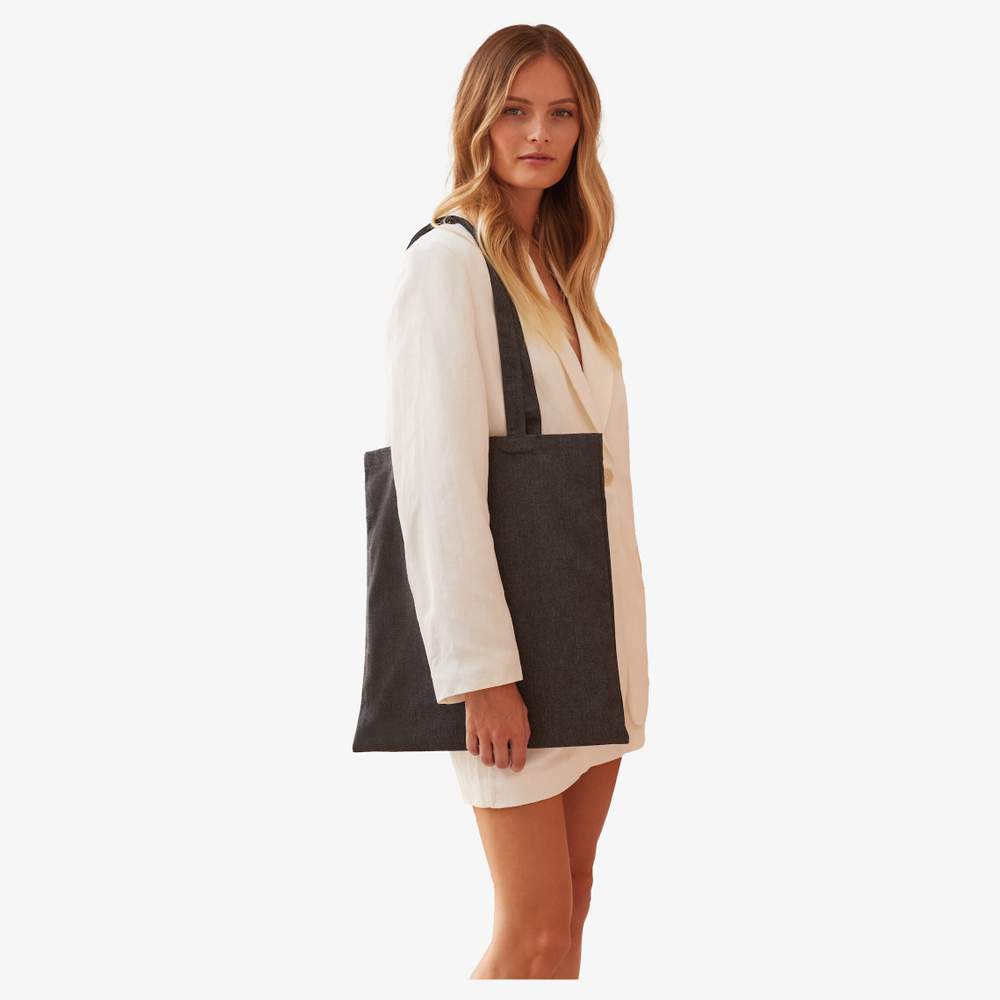 Diese Beutel ist aus einer Mischung aus recycelter vorverbrauchter Baumwolle und recycelter nachverbrauchter Polyester hergestellt, die eine nachhaltige Option für den täglichen Gebrauch bietet. Seine Abmessungen von 38 x 42 cm und sein Fassungsvermögen von 10 Litern machen ihn zu einem praktischen und vielseitigen Accessoire. Seine Zusammensetzung verleiht ihm eine gute Widerstandsfähigkeit und eine erhöhte Haltbarkeit. Diese Tasche ist eine verantwortungsvolle Alternative zum Transport Ihrer persönlichen Gegenstände.