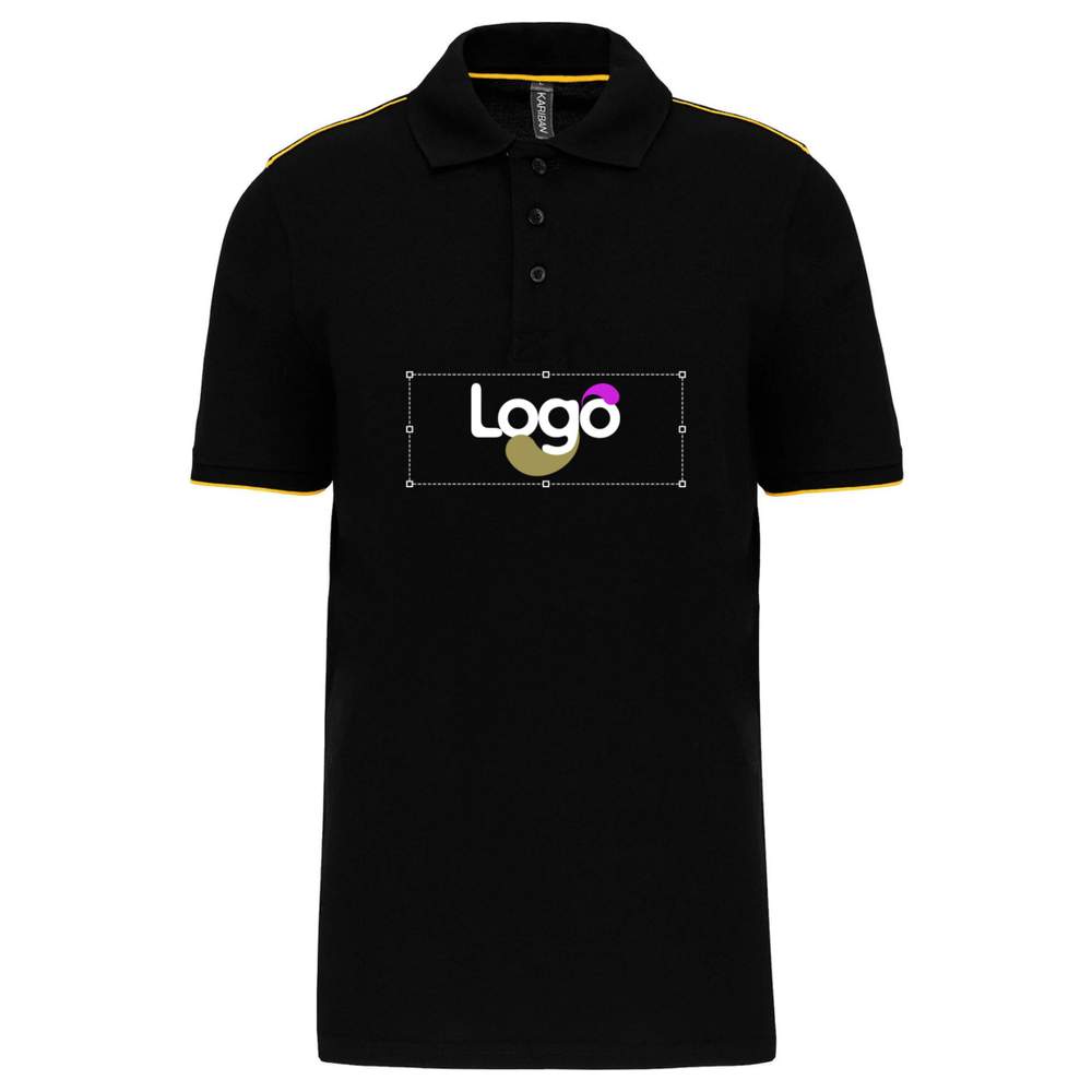 Kontrastiertes Polo-Hemd mit kurzen Ärmeln für Männer wk270 personalisiert - Black yellow