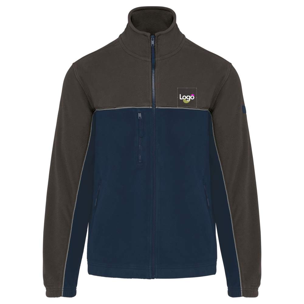 Zweifarbiges Microfleecejacke unisex ökologisch. Modell aus antiballendem Microfleece mit schmalem Schnitt. Sie verfügt über zwei seitliche Reißverschlusstaschen und eine Brusttasche mit Reißverschluss. Die Reißverschlüsse bestehen aus recyceltem, ton-in-ton Kunststoff mit Zuglasche. Ein kontrastfarbiger Saum im Zickzackmuster und ein kontrastfarbiges Besatzband zwischen den zweifarbigen Teilen des Kleidungsstücks (Körper und Ärmel vorne und hinten) fügen einen ästhetischen Akzent hinzu. Ein elastischer Stiftetui mit drei Fächern am linken Ärmel bietet zusätzliche Funktionalität. Eine Innenhalterung am Kragen und elastische Bündchen an Ärmeln und Kleidungsstück bieten einen bequemen Sitz. Das Tear Away-Etikett ermöglicht eine einfache Personalisierung.