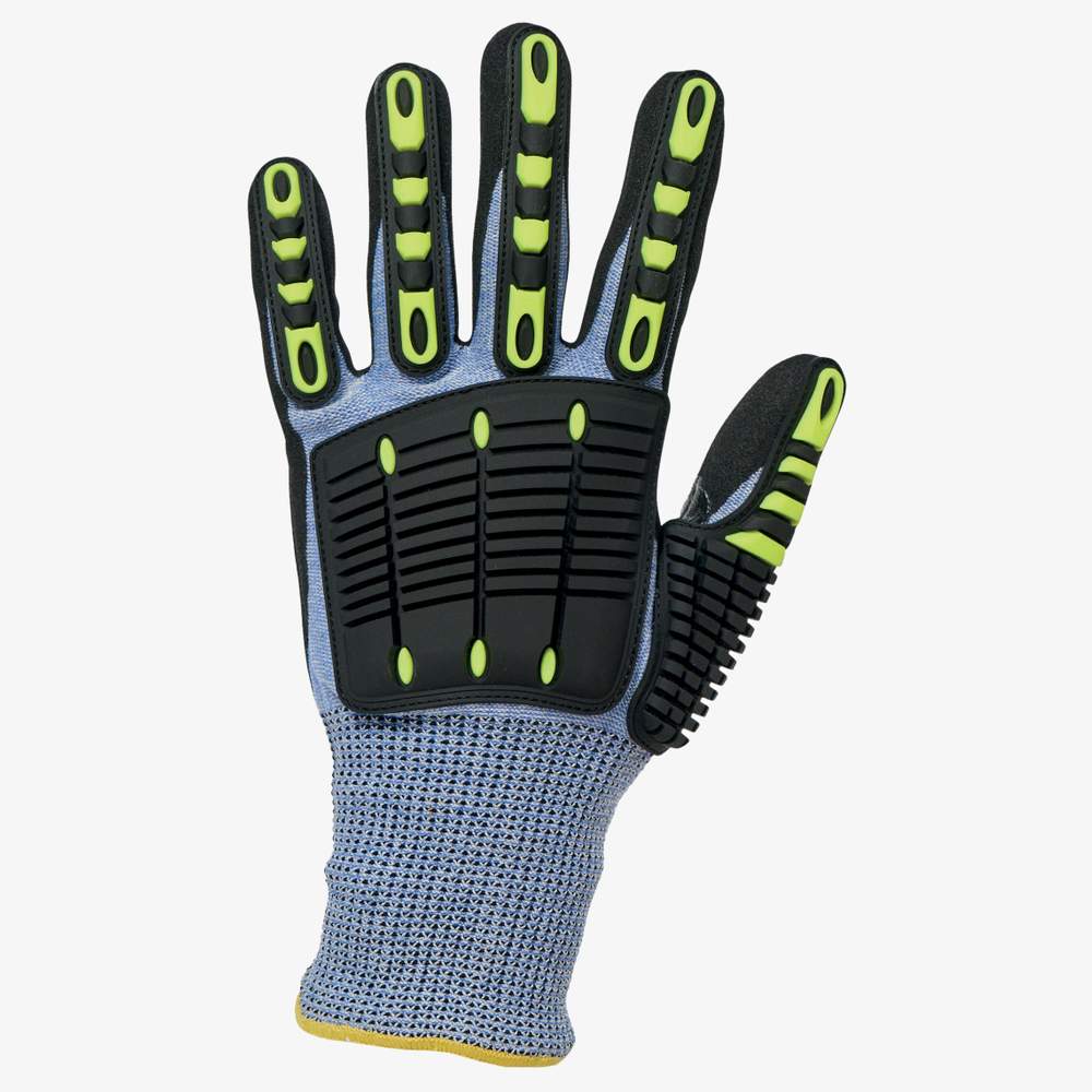 Schutzhandschuhe, die speziell entwickelt wurden, um einen verbesserten Schutz gegen Schnittverletzungen, Stöße und Quetschungen zu bieten. Sie sind mit einem gestrickten Träger aus HPPE, Stahlfaser, Polyester und Elasthan gefertigt, was eine ausgewogene Mischung aus Flexibilität und Haltbarkeit bietet. Die Maschengröße 13 sorgt für bessere Fingerfertigkeit. Die Sandy-Nitril-Beschichtung auf der Handfläche und den Fingern bietet einen verbesserten Griff und zusätzlichen Schutz. Eine Verstärkung aus Sandy-Nitril befindet sich zwischen Daumen und Zeigefinger für zusätzlichen Schutz in diesem empfindlichen Bereich. PVC-Verstärkungen sind auf dem Handrücken und den Fingern für zusätzlichen Schutz gegen Stöße angebracht. Das elastische Handgelenk mit einer überstehenden Naht sorgt für einen bequemen und sicheren Sitz.