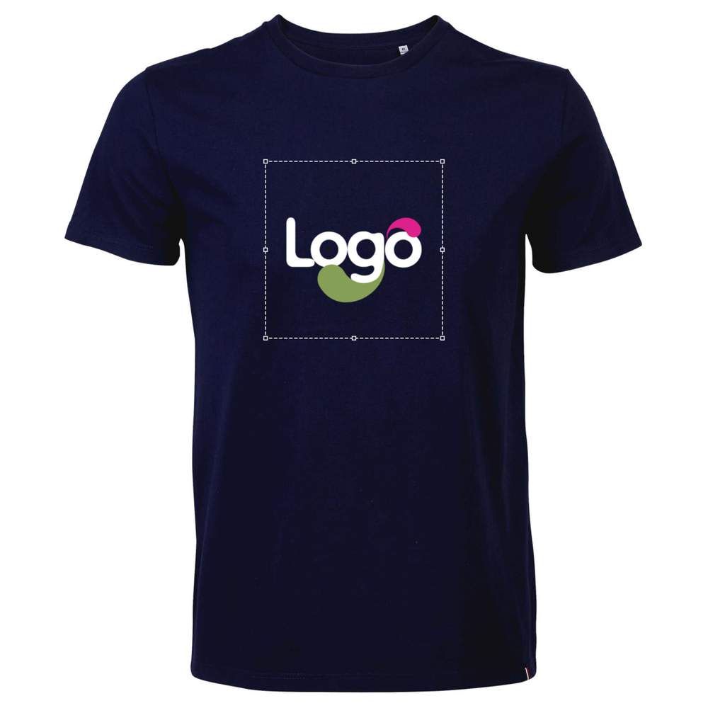 This men's t-shirt is made in France with jersey 150, 100% combed cotton. It features a fitted cut, a round neck and short sleeves. A neckband ensures optimal comfort. Tricolor detail at the bottom of the body and tear-away label for added comfort. This model is ideal for customization according to your wishes.