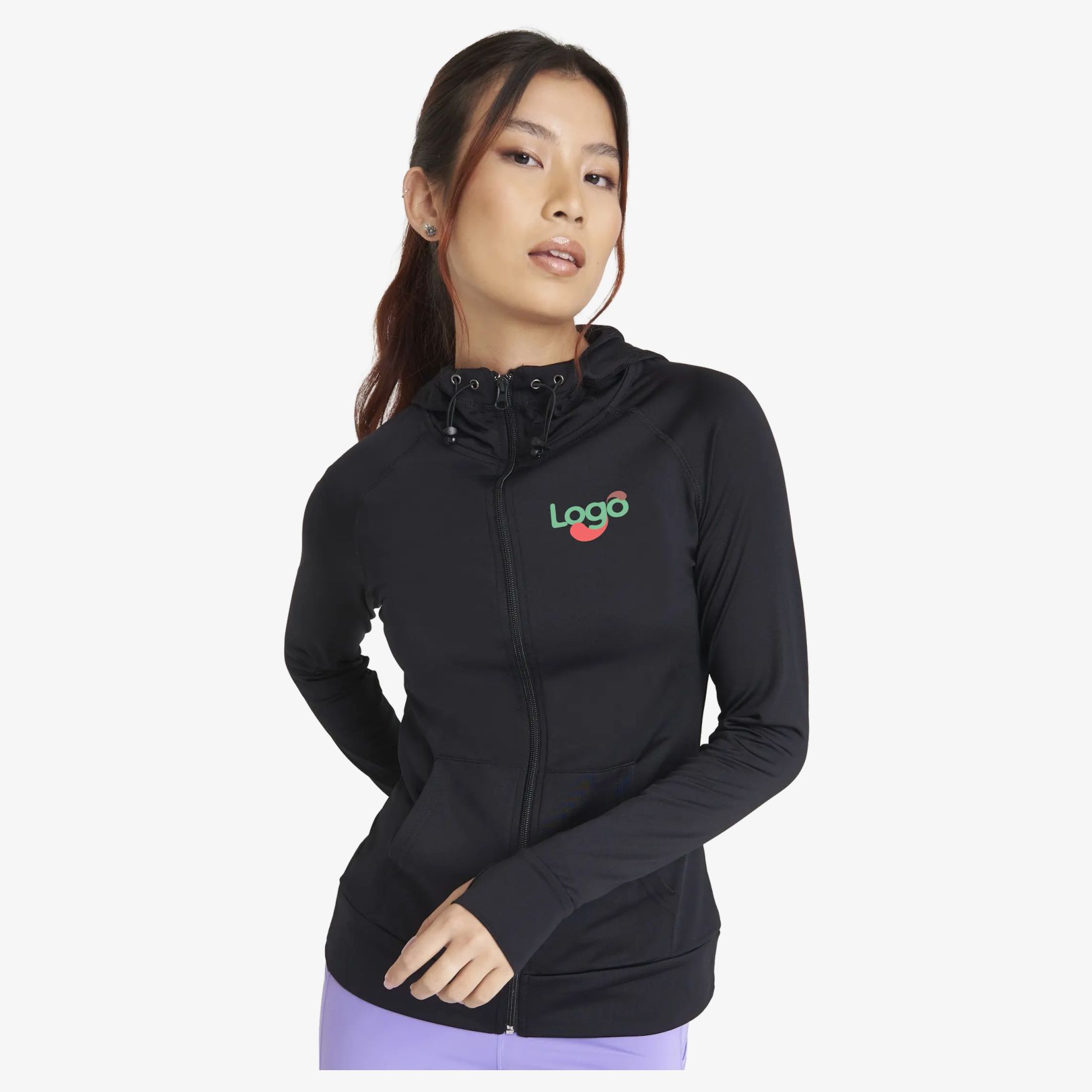When the nights get cool or if you want to put on a warm hoodie for your trip to the gym, the women's zippered hoodie combines moisture-wicking properties with slightly brushed fabric on the body. The adjustable drawstring hood protects you from the elements, while the raglan sleeves and thumbholes provide great freedom of movement. Contrasting fabric on sleeves and body. This garment is customizable with embroidery to incorporate your logo or your visual.