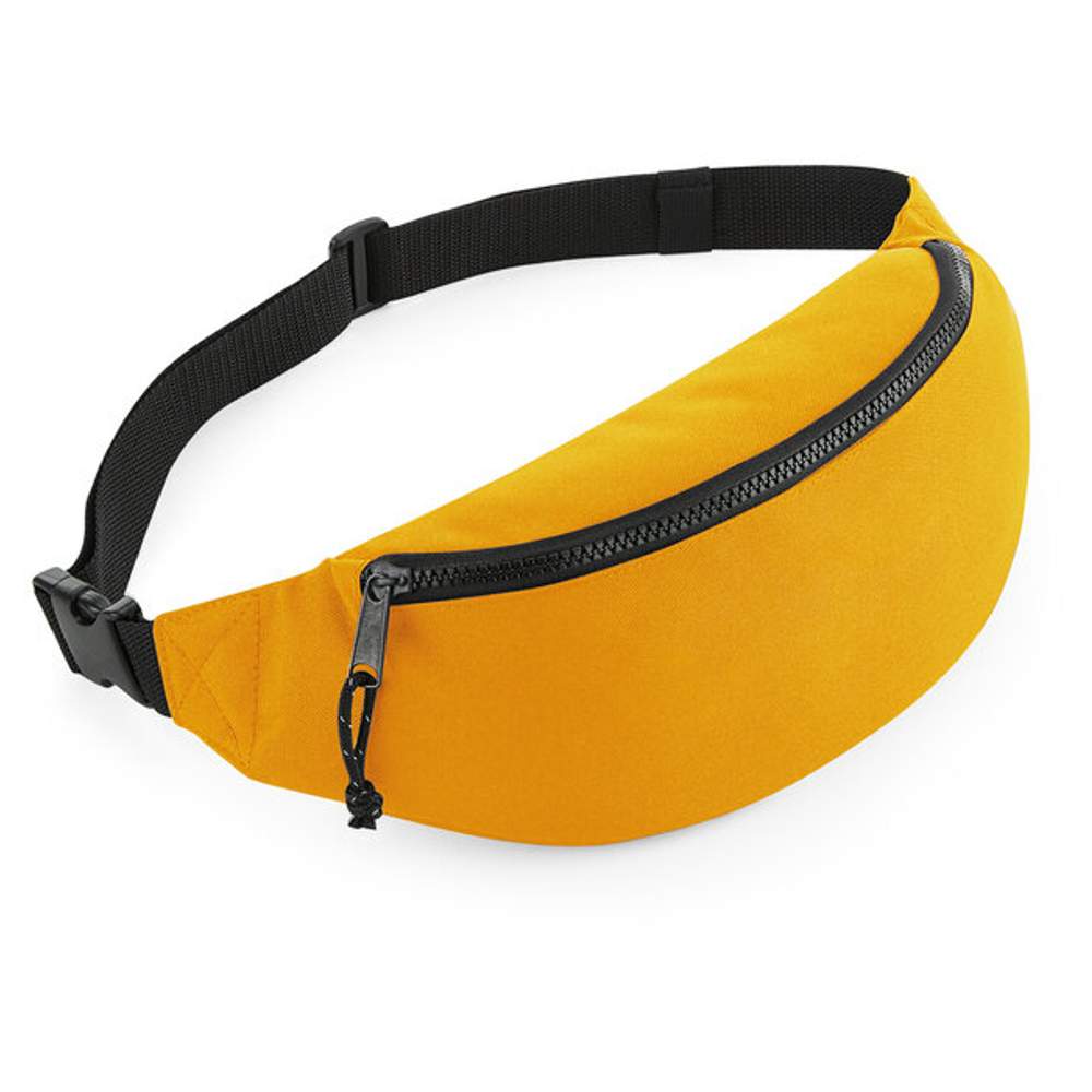 Fanny pack offering a large main compartment with zip closure for storing personal belongings. It is equipped with cord pull tabs with reflective details for increased visibility. A zipped back pocket allows quick access to small items. The belt is adjustable for comfortable and personalized carrying. A TearAway tag is present. This fanny pack is made of recycled polyester, contributing to a more responsible approach.