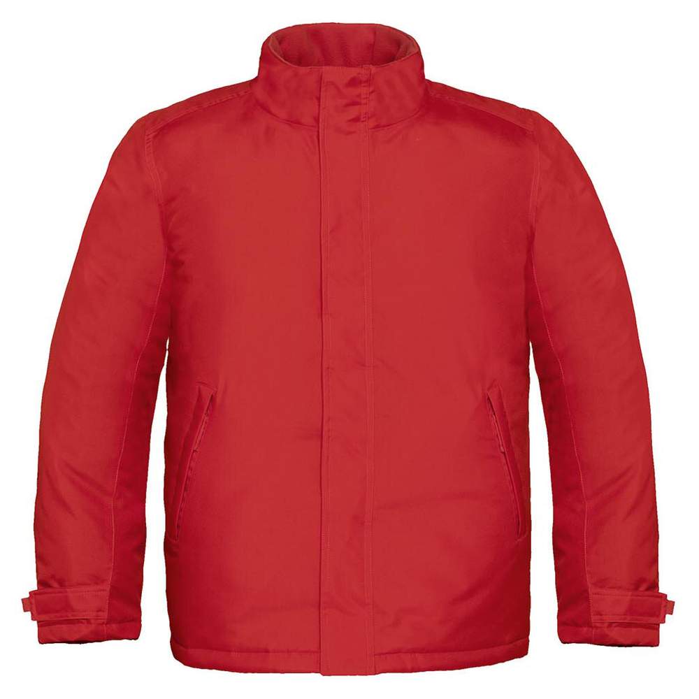 This Real+ men windbreaker offers effective protection against wind and moisture thanks to its Oxford polyester construction and inner padding. It features an integrated hood in the collar for enhanced protection, as well as multiple zippered pockets to securely store your personal belongings. The matching zipper with storm flap and chin guard ensures a watertight and comfortable closure. Adjustable cuffs with hook-and-loop fasteners and an inner zippered pocket add extra functionality.