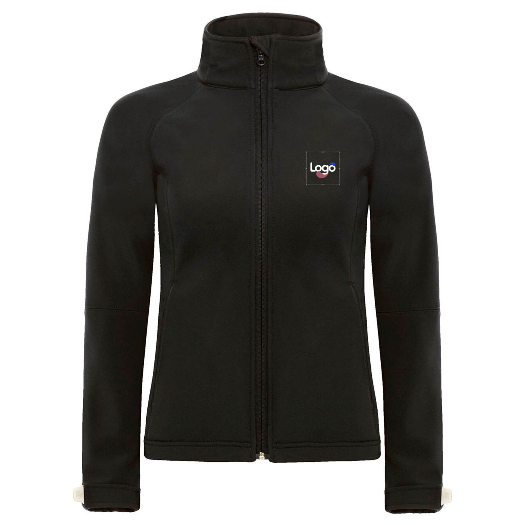 This breathable softshell clothing for women combines comfort and functionality. It is designed with an outer layer of polyester and elastane, a breathable microporous membrane, and a fleece polyester anti-pilling lining. It features a removable and adjustable hood, a full-length zipper with an inner flap and chin guard, raglan sleeves, side pockets with zippers, adjustable wrist cuffs with Velcro closures, an adjustable waist with drawstring and toggles, and an extended back. This item offers a non-apparent access to the heart for easy embroidery customization.
