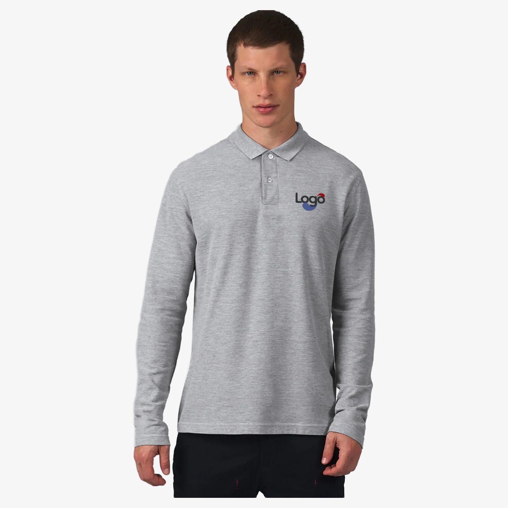 Long-sleeved piqué polo made of 100% preshrunk continuous filament cotton (ring-spun). It features a 1x1 ribbed collar, a neck tape for better hold, and a reinforced double-button placket with thermo-bonded interfacing. Its regular fit cut and side seams ensure optimal comfort and a flattering silhouette. This polo is ideal for embroidery customization, allowing you to add your logo or design for effective and personalized communication.
