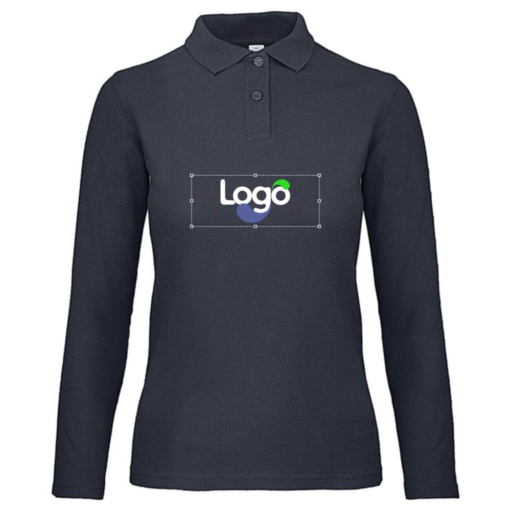 Long sleeve piqué polo shirt for women. 1x1 ribbed collar. Clean edge band for better hold. Button-down placket with two buttons reinforced with a thermo-bonded strip. Feminine cut, regular fit. Side seams for a perfect fit. Composition: 100% pre-shrunk continuous filament cotton (ring-spun). Possibility of customization by embroidery.