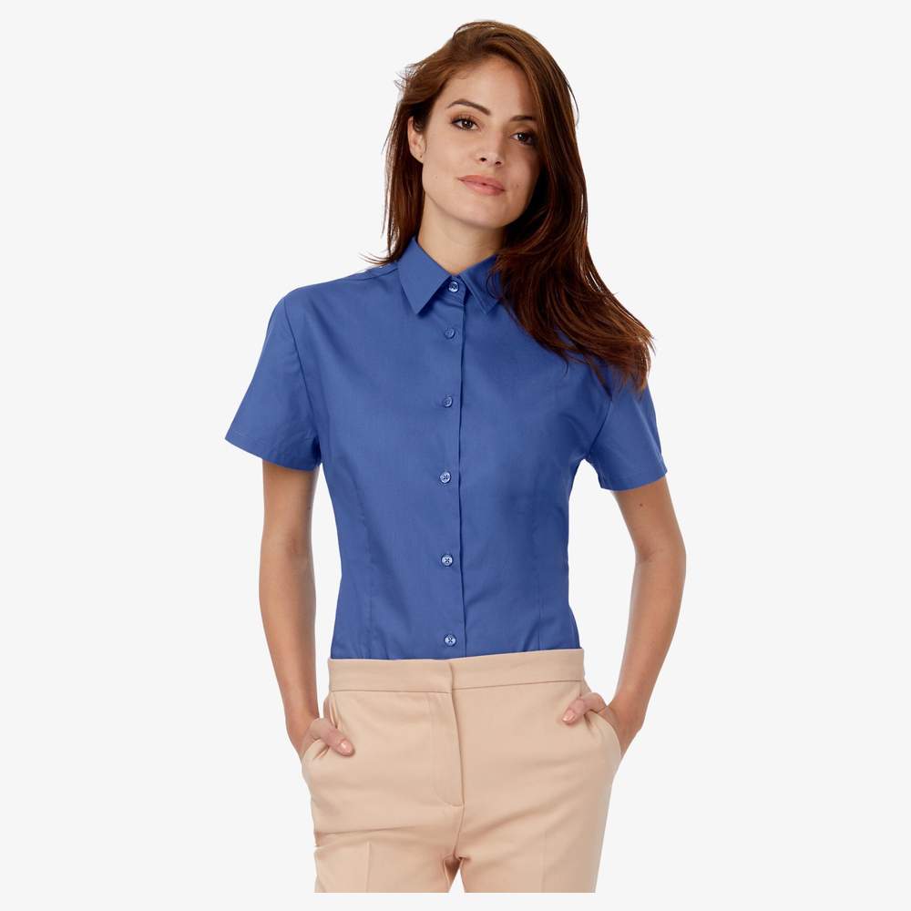 This heritage blouse women is made of 100% combed cotton. It features a fitted cut thanks to the darts at the chest, front and back. The feminine collar adds a touch of elegance. The matching mother-of-pearl buttons are sewn in cross-stitch, with a last horizontal buttonhole. The lower edge is modern and rounded, and a spare button is included. The Easy Care treatment facilitates fabric care.