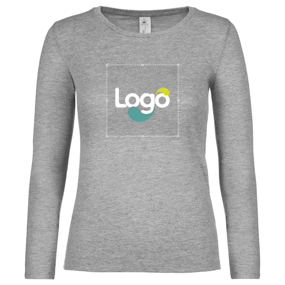 This women's long-sleeved t-shirt offers a contemporary classic fit and side seams for optimal comfort. Its fine ribbed hems give it a modern look. Its comfortable body length allows you to wear it both inside and outside the pants. Made of 100% continuous cotton chain (ring-spun), it provides exceptional quality and feel. This garment is ideal for customization with your logo, design or message.