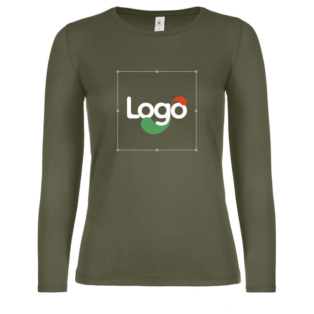 This women's long-sleeved t-shirt offers a contemporary classic fit and side seams for optimal comfort. Its fine ribbed hems give it a modern look. Its comfortable body length allows you to wear it both inside and outside the pants. Made of 100% continuous cotton chain (ring-spun), it provides exceptional quality and feel. This garment is ideal for customization with your logo, design or message.