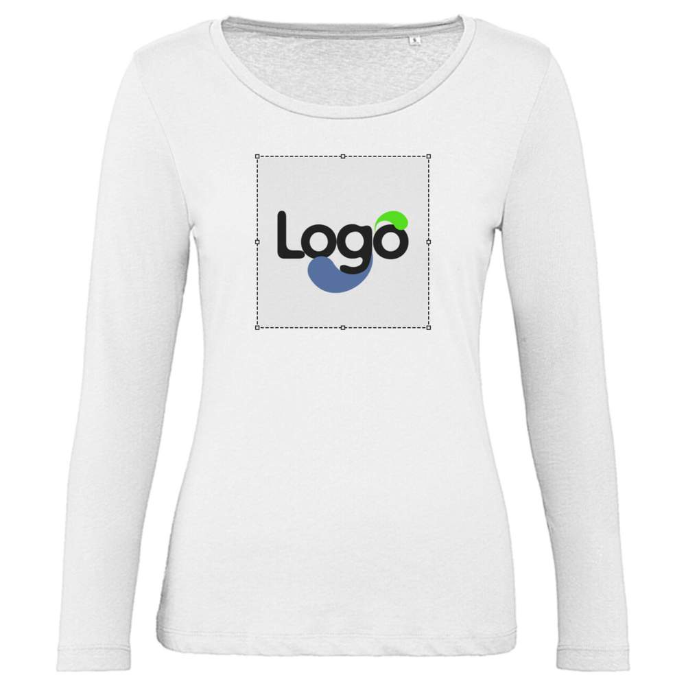 Women's long-sleeve T-shirt 100% organic cotton or in conversion. Oekotex100 certified. Medium fit, ultra-soft touch. Side seams. Neckband. Wide neckline. No brand label in the collar. Composition: 100% combed Ringspun and certified organic cotton. This T-shirt is ideal for customization and adapts to all your needs.
