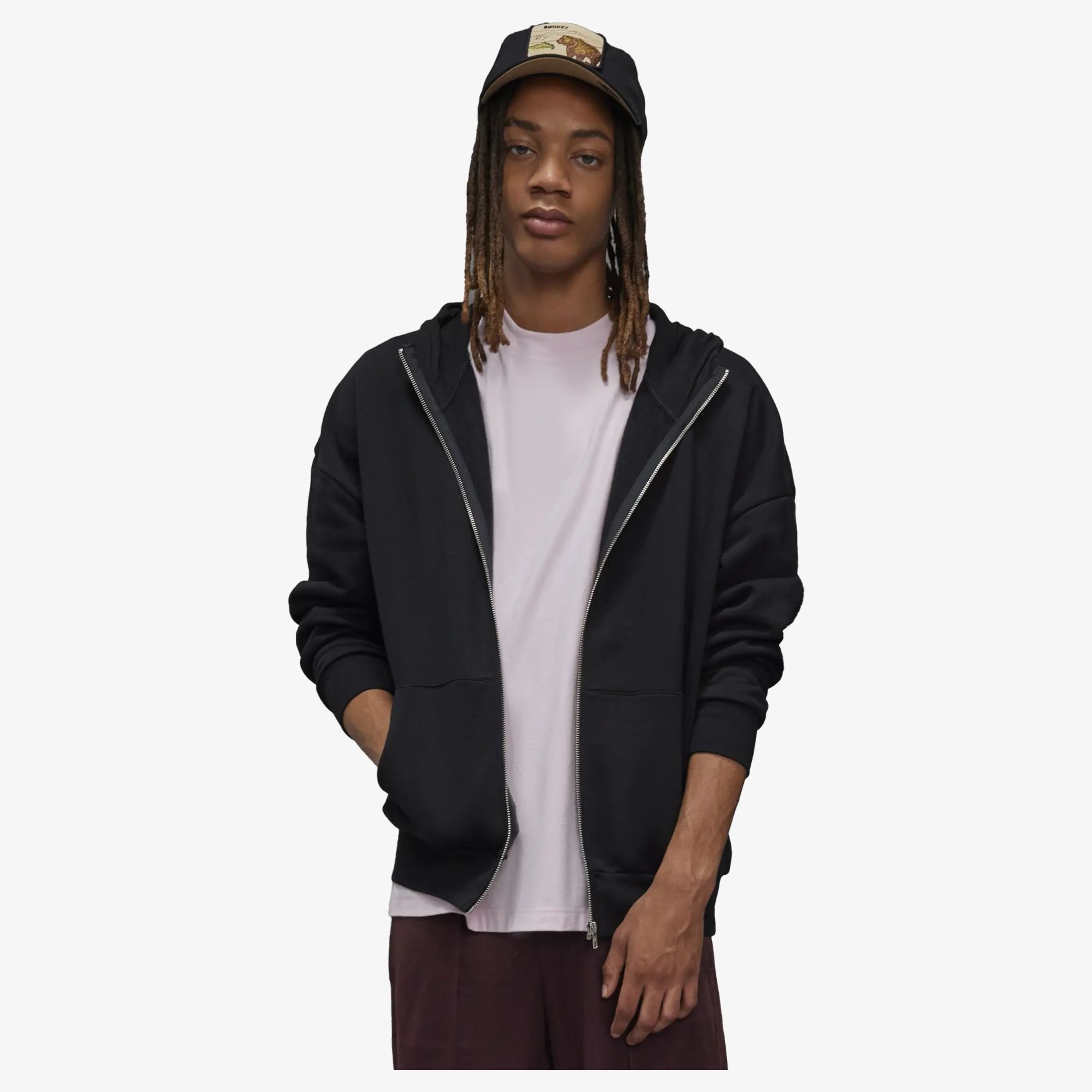 The Influence zip hood zip hoodie with brushed fleece interior and side seams. High collar, dropped shoulders and relaxed fit for casual wear. Lined hood without drawcord and deep pockets.